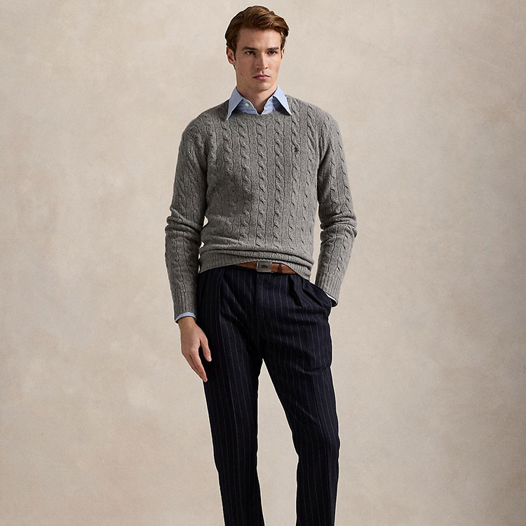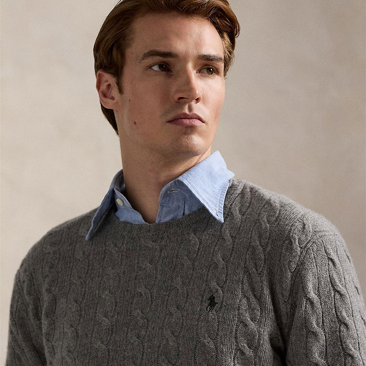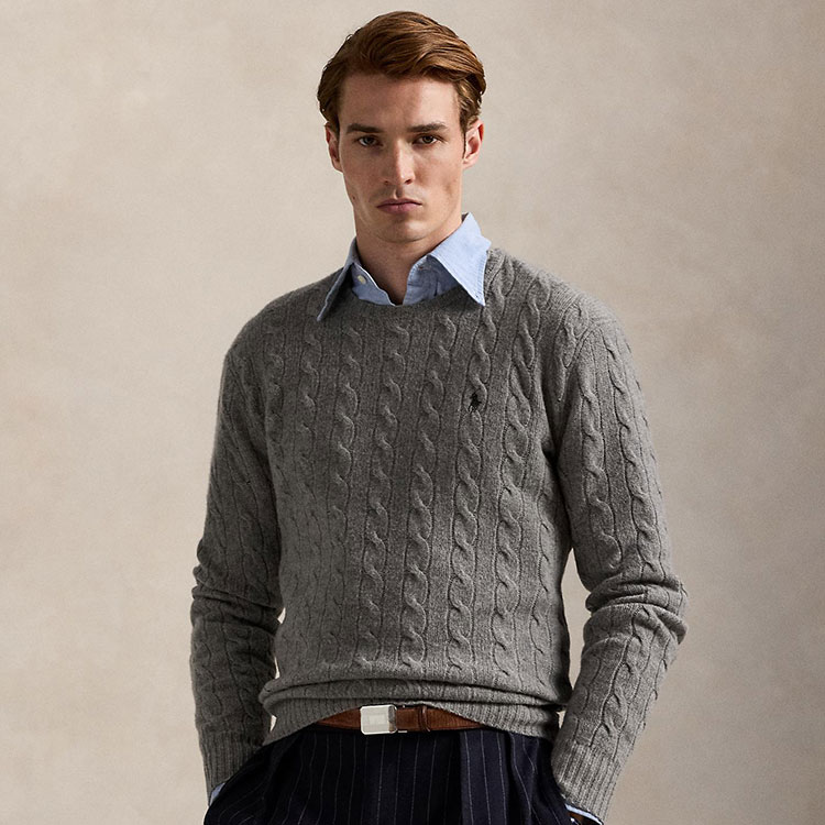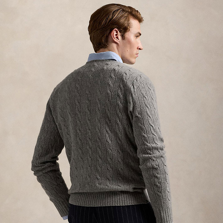 わずかにカシミヤを混紡したイタリア製ウールで編み上げた、アイコニックなケーブルニットセーター。