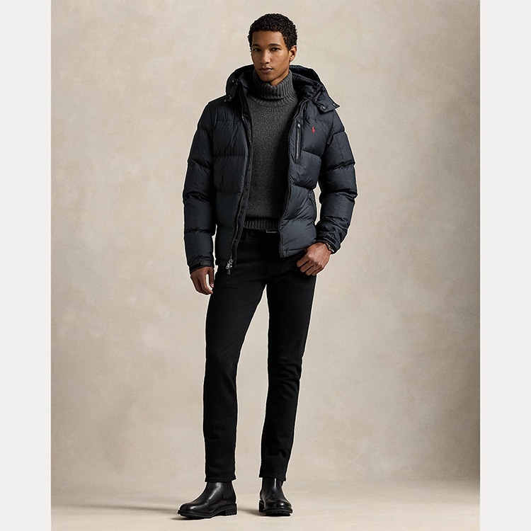 アウトドアシーンにインスパイアされた、フード着脱可能なダウンジャケット。