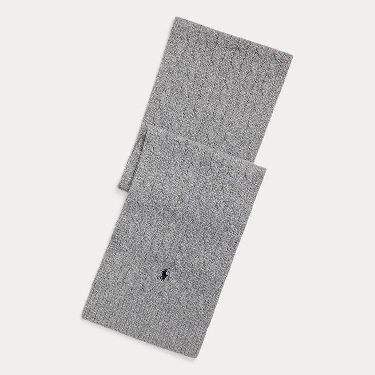 リブニットの両端。片端にシグネチャーのポニー刺繍。ドライクリーニング。