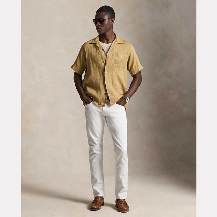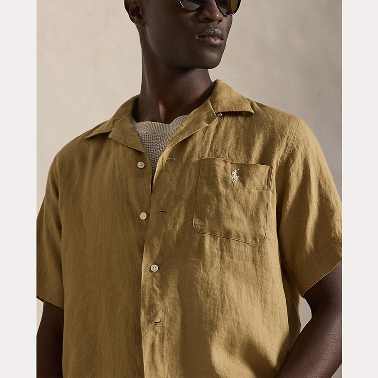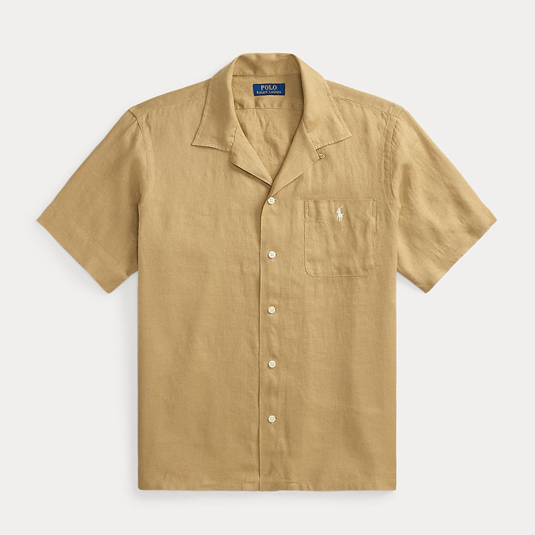 非常に薄手のリネンを使用し、ポケットにあしらったシグネチャーのポニー刺繍で仕上げたキャンプシャツ。