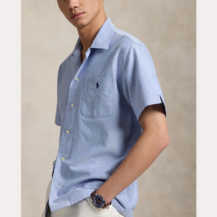 ポケットのポニー刺繍で仕上げたキャンプカラー バージョンも無数のバリエーションのひとつ。クラシックフィット:胸、ウエスト、袖にかけてゆったりとしたカット、低いアームホール。キャンプカラー / ボタン付き前立て / 半袖。左胸にパッチポケット / プリーツ入りのバックヨークで肩のなめらかな曲線を強調 / ストレートな裾。ポケットにシグネチャーのポニー刺繍。※商品の色味は、光のあたり具合など諸条件により色感が多少異なって見える場合がございますので予めご了承下さい。