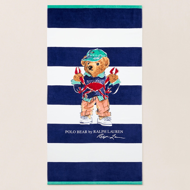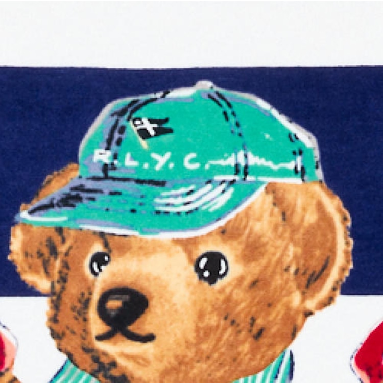 コットンベロアテリー / 420g/㎡。フロント中央にPoloベア、Polo Bear by Ralph Lauren、Ralph Laurenのサインの文字のプリント。長さ約168cm x 幅約89cm。