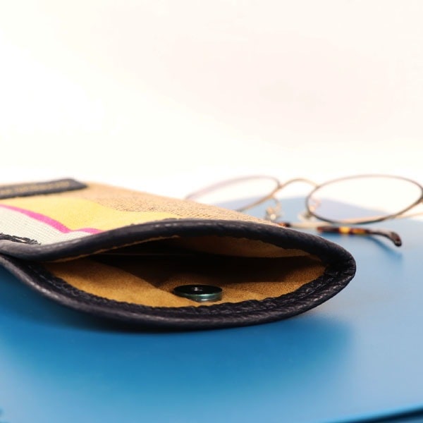 - メガネを傷つけないよう、裏地には柔らかい生地を使用。マグネットホックなので、出し入れも簡単です。