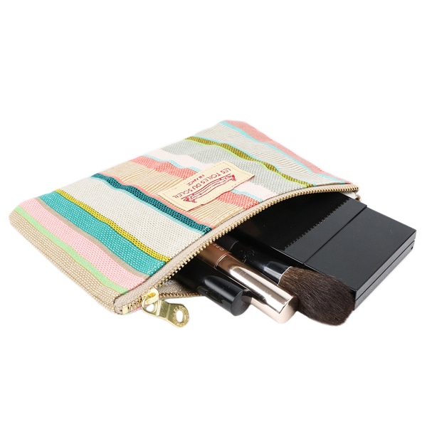 - フラットポーチは、ペンやコスメグッズなどの小物をまとめるのにちょうど良いサイズです。