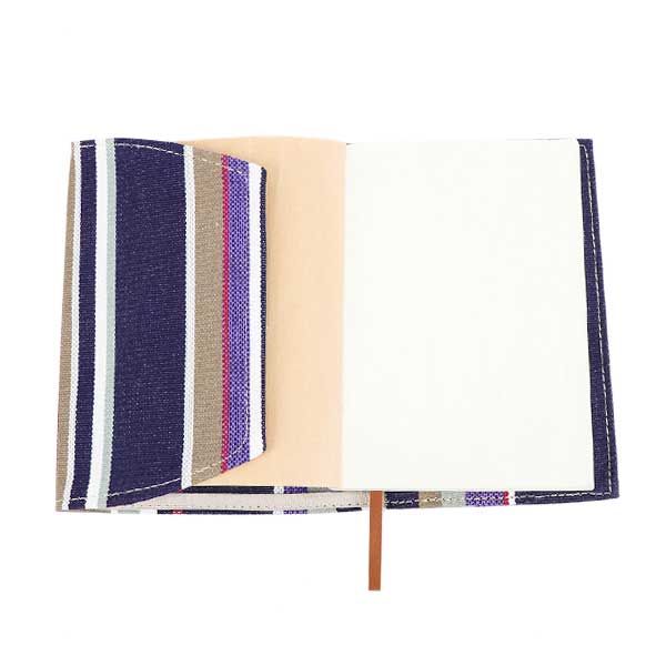 - ストライプ生地を全面に使用した文庫本サイズのブックカバーです。