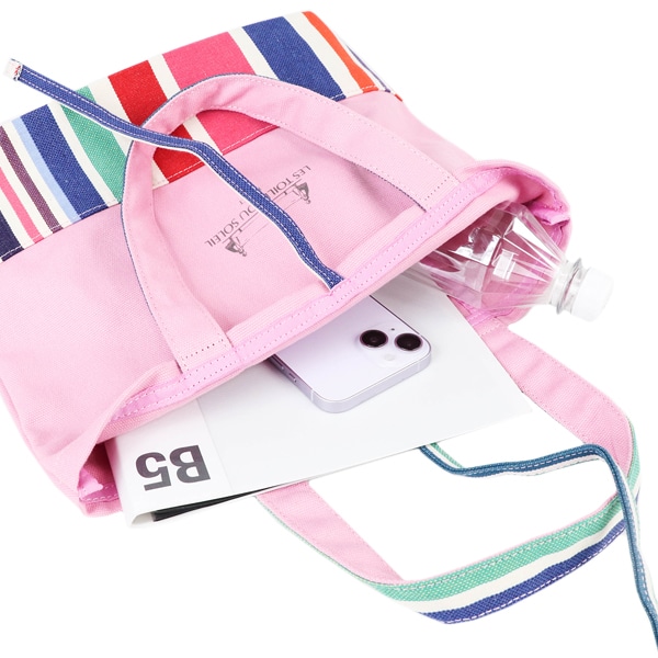- カラフルで上品なトートバッグは、口元のリボンデザインが可愛らしいアクセントになり、デイリーコーデに華やかさをプラスします。