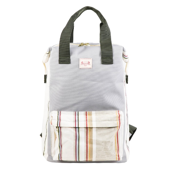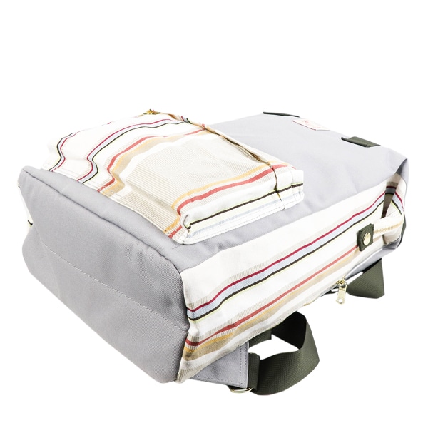 - 前ポケットとサイドに個性あふれるソレイユストライプを組み合わせ、ボディカラーとのコントラストが楽しいデザインです。