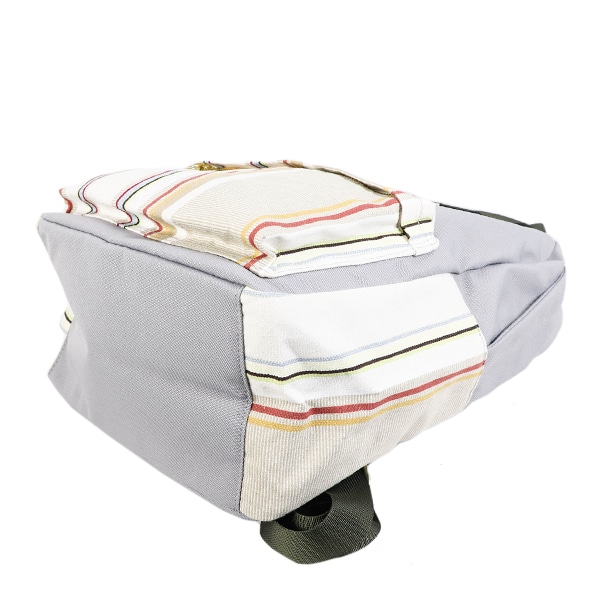 - 前ポケットとサイドに個性あふれるソレイユストライプを組み合わせ、ボディカラーとのコントラストが楽しいデザインです。