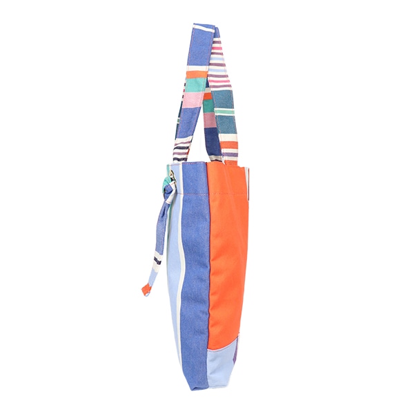 - 裏面はシンプルな無地生地を使用し、下部のみストライプ柄の切り替えを施し、遊び心溢れるデザインになっています。