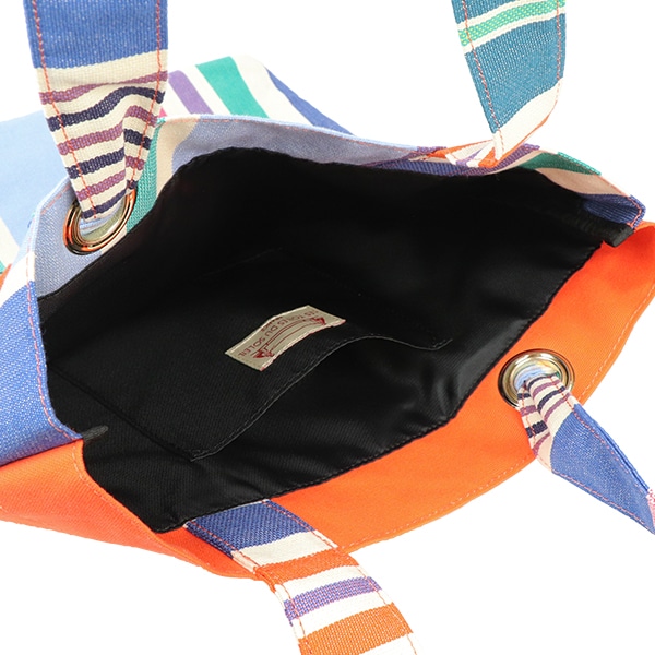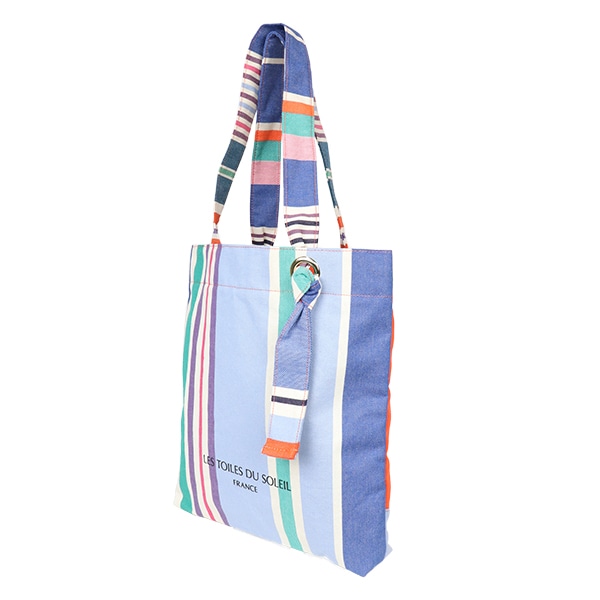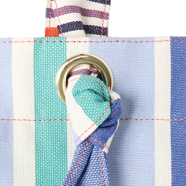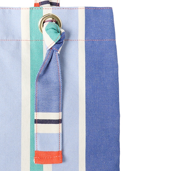 - 表面にはソレイユストライプ生地を採用し、下部にロゴの吹き付けプリントを施し、さりげないポイントになっています。