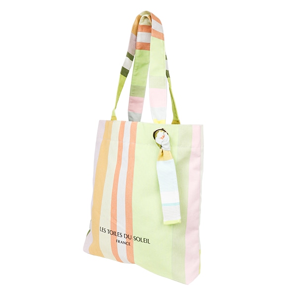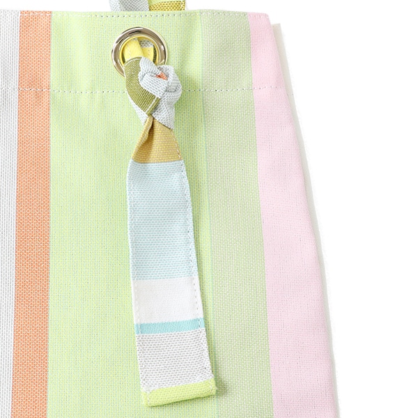 - 表面にはソレイユストライプ生地を採用し、下部にロゴの吹き付けプリントを施し、さりげないポイントになっています。