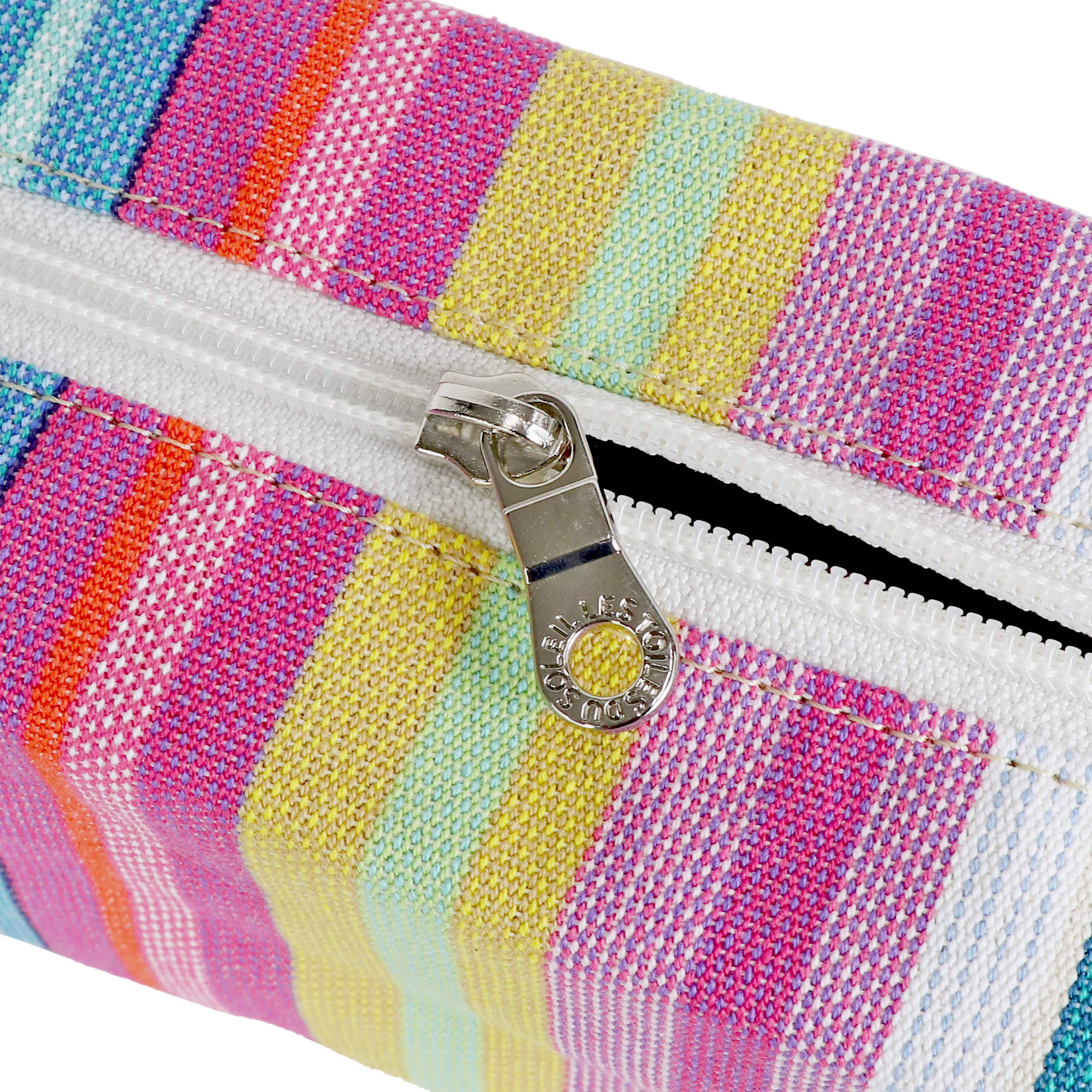 - 持ち運びに便利な同柄の持ち手が付いているのも嬉しいポイント。