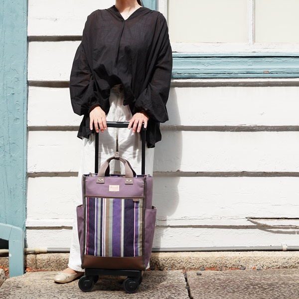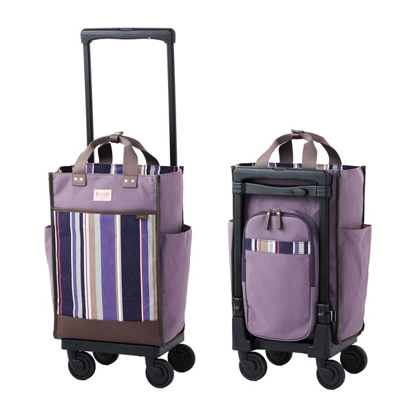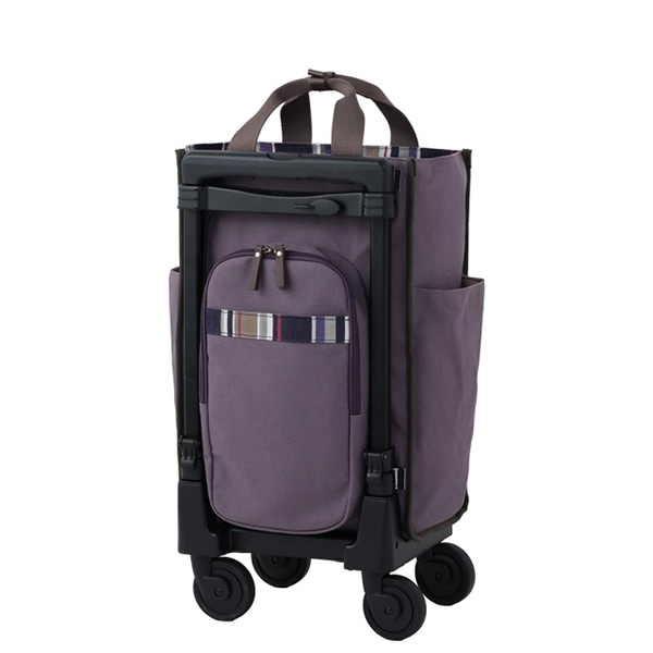 - 自立する設計なので、お会計時や信号待ちでも手を離せて安心。 4輪ストッパー付きで、電車やバスの移動中も勝手に動く心配がありません。
