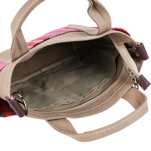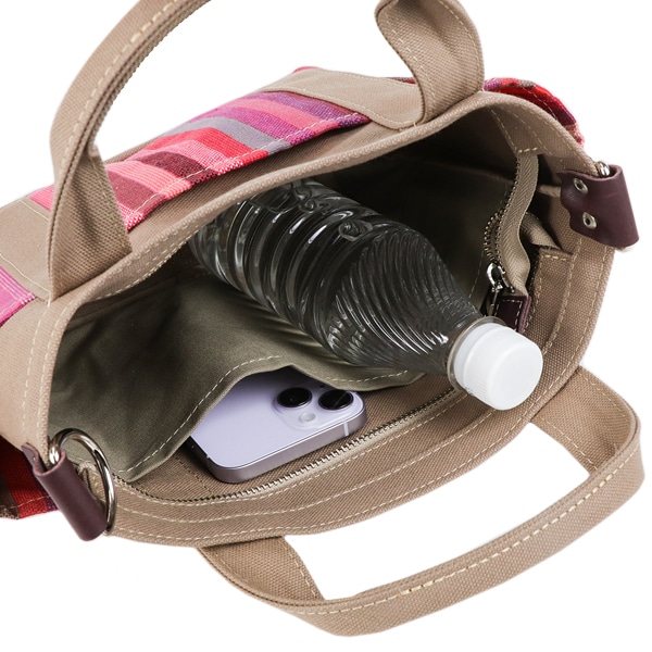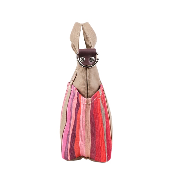 - 【素材】ストライプ生地:綿100%、裏地:綿100%、革部分:牛革