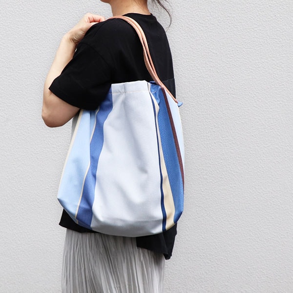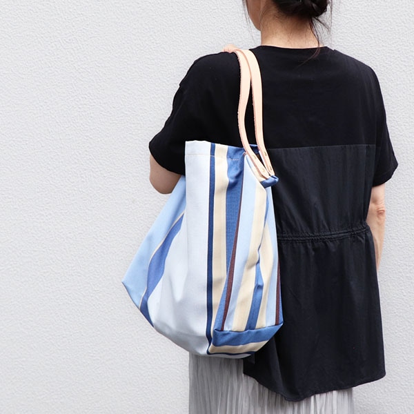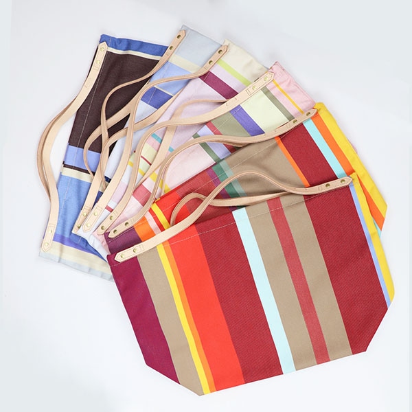 - 鮮やかな発色が美しいSunbrella生地を使用した「ソフトトート」。