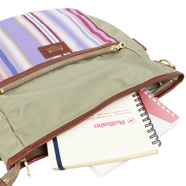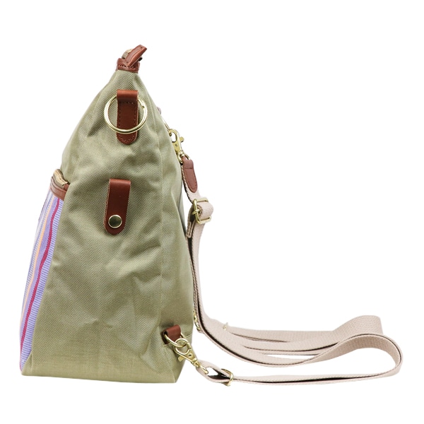 - 【素材】ストライプ生地:綿100%、無地:ナイロン100%、革部分:牛革