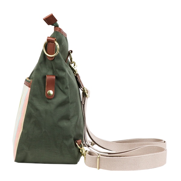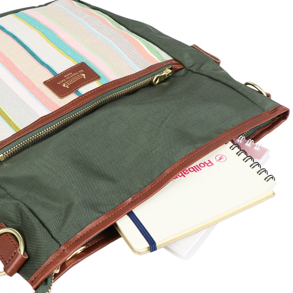 - 【素材】ストライプ生地:綿100%、無地:ナイロン100%、革部分:牛革