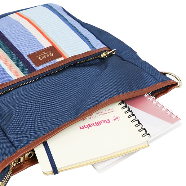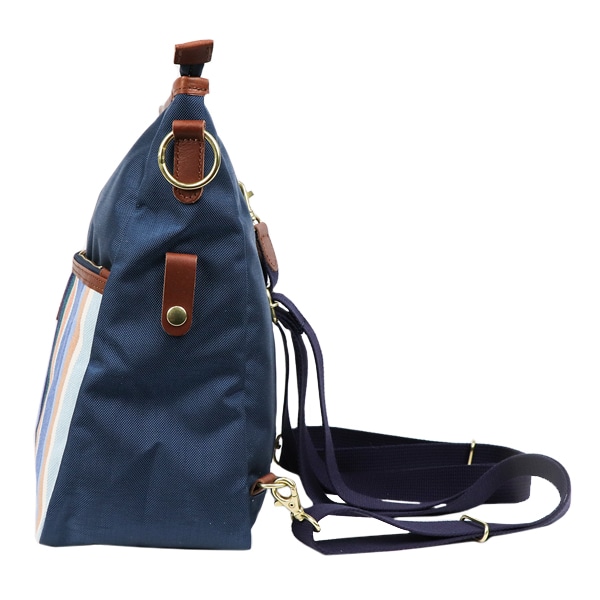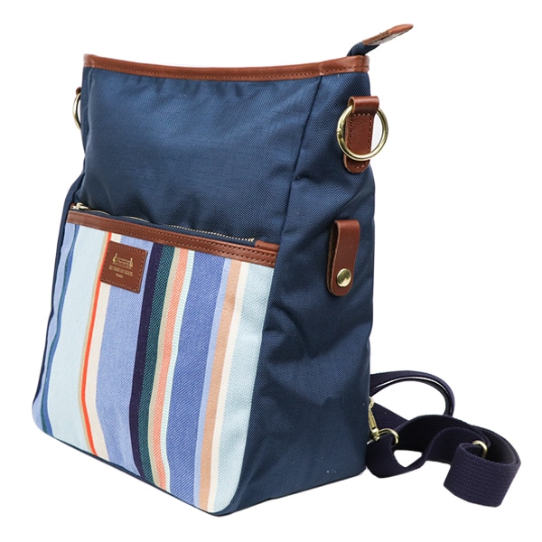 - 【素材】ストライプ生地:綿100%、無地:ナイロン100%、革部分:牛革