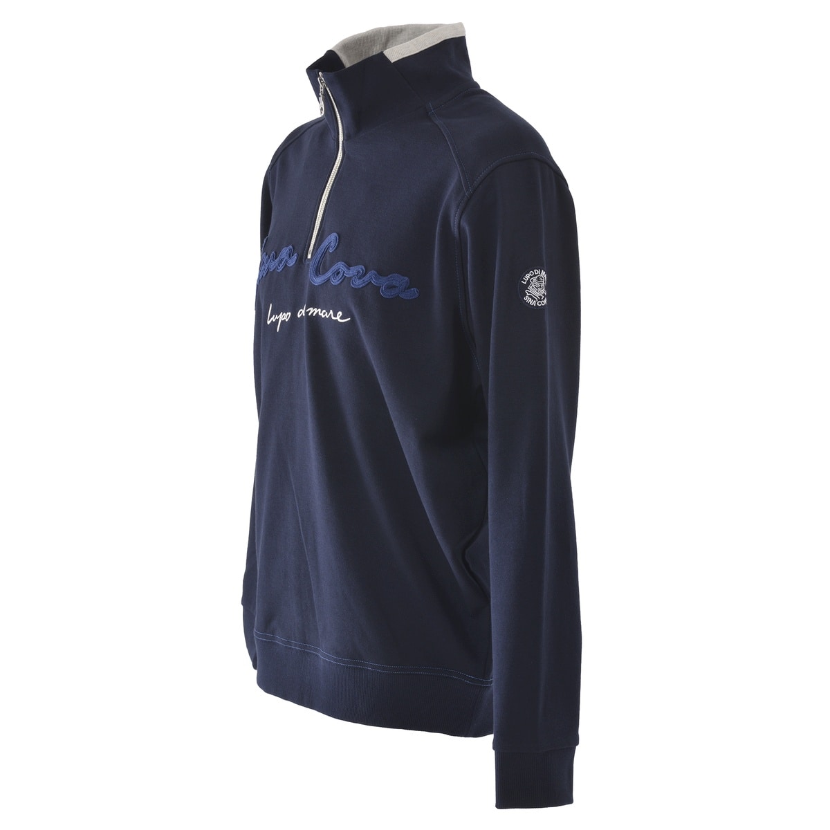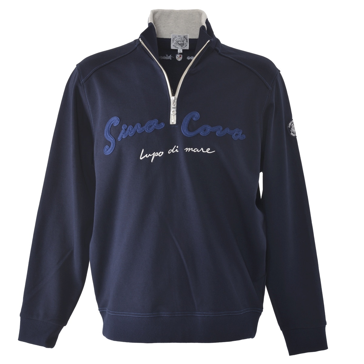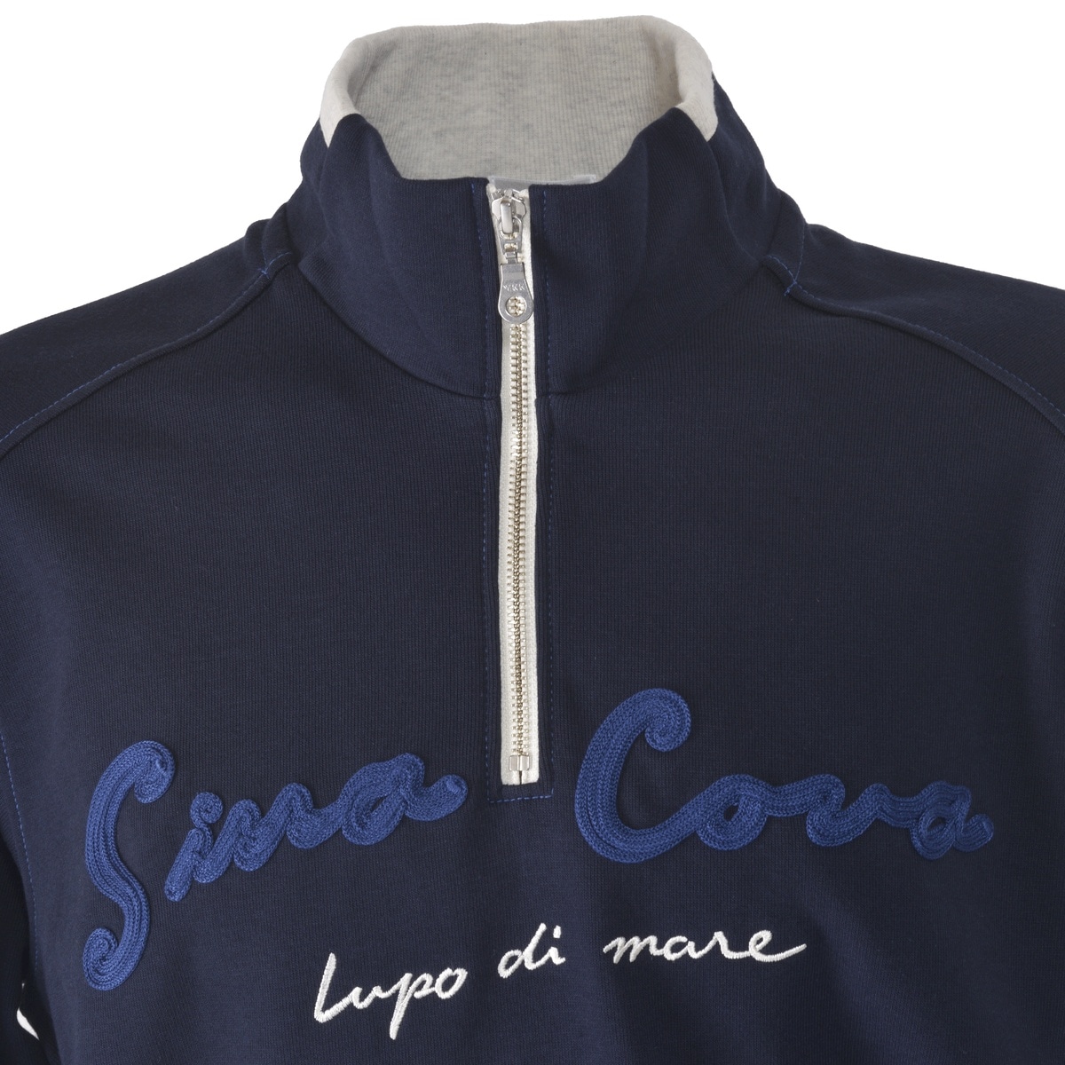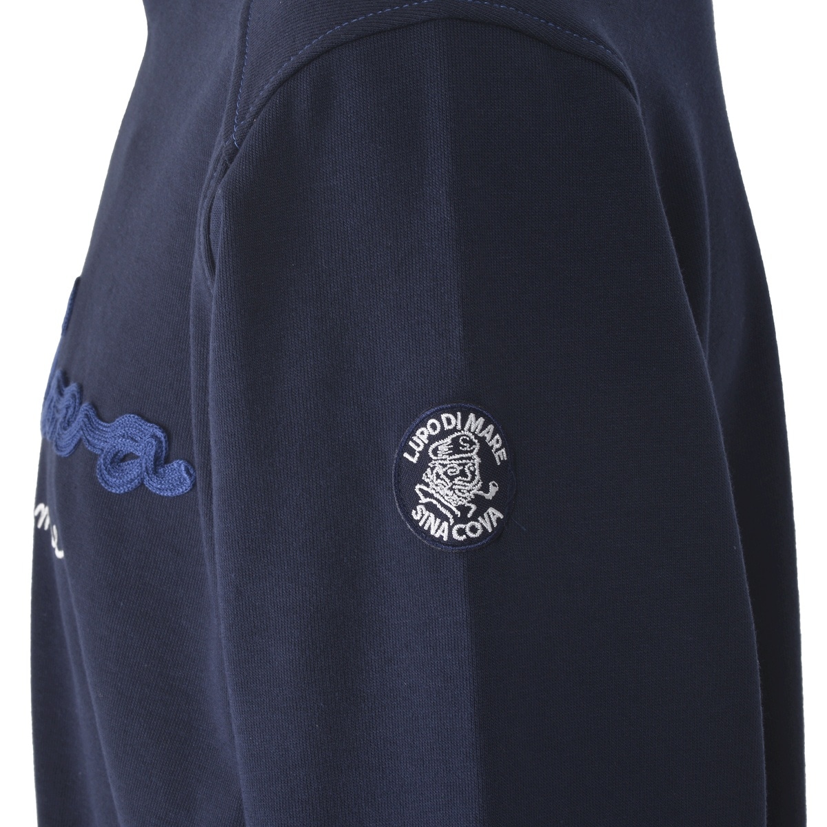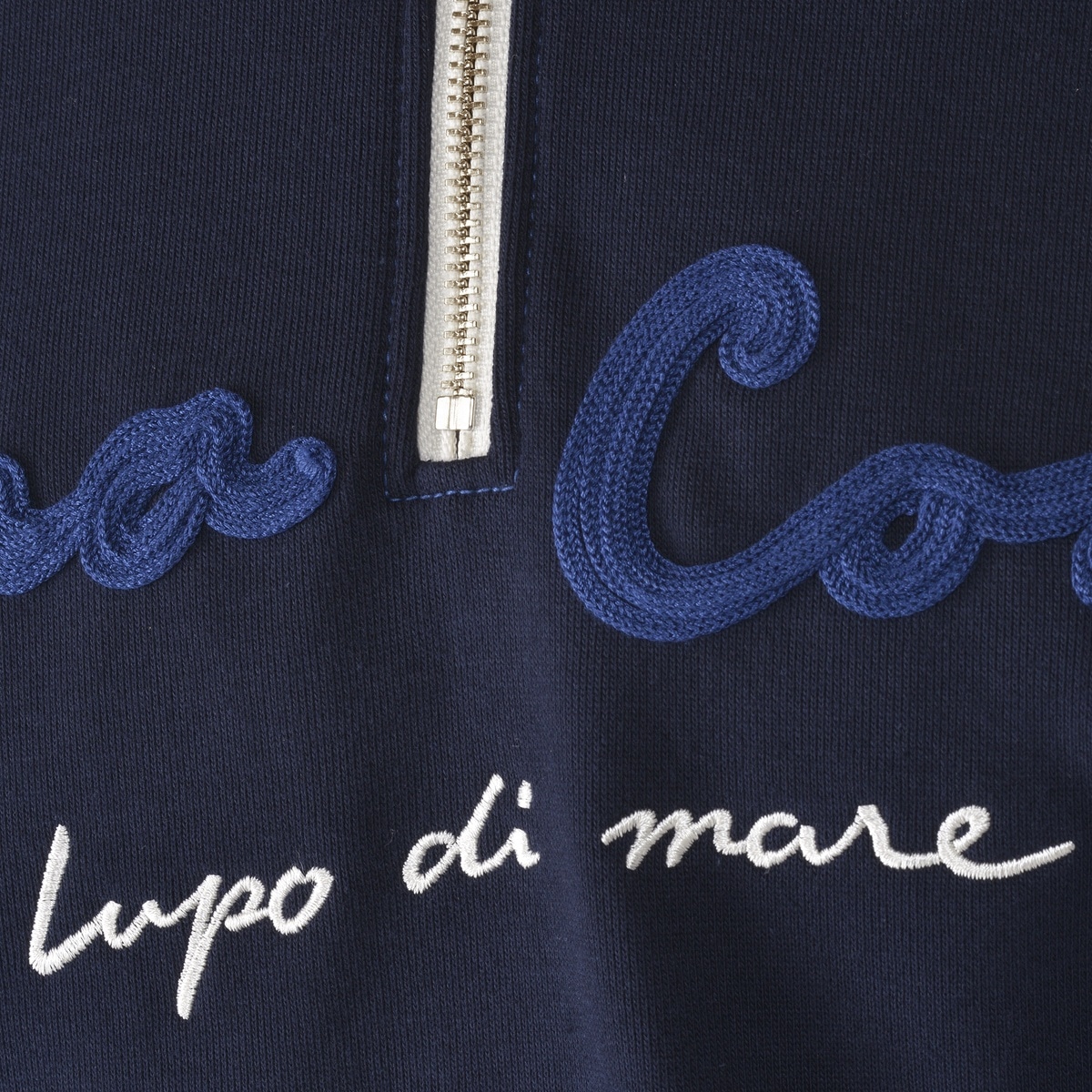 リリアンコード状に刺繍したシナコバロゴと衿元のカラー配色が特徴的なプルオーバーです。