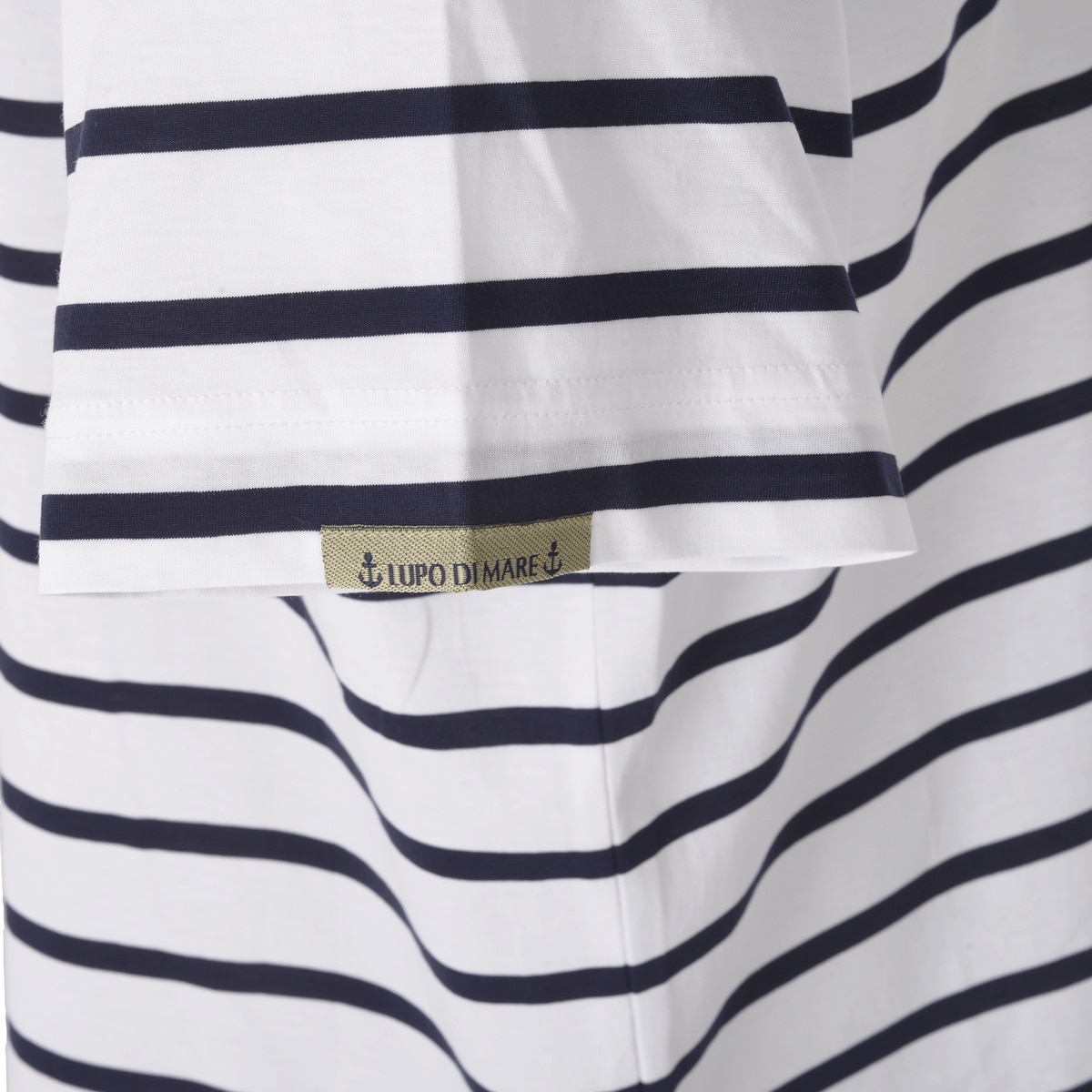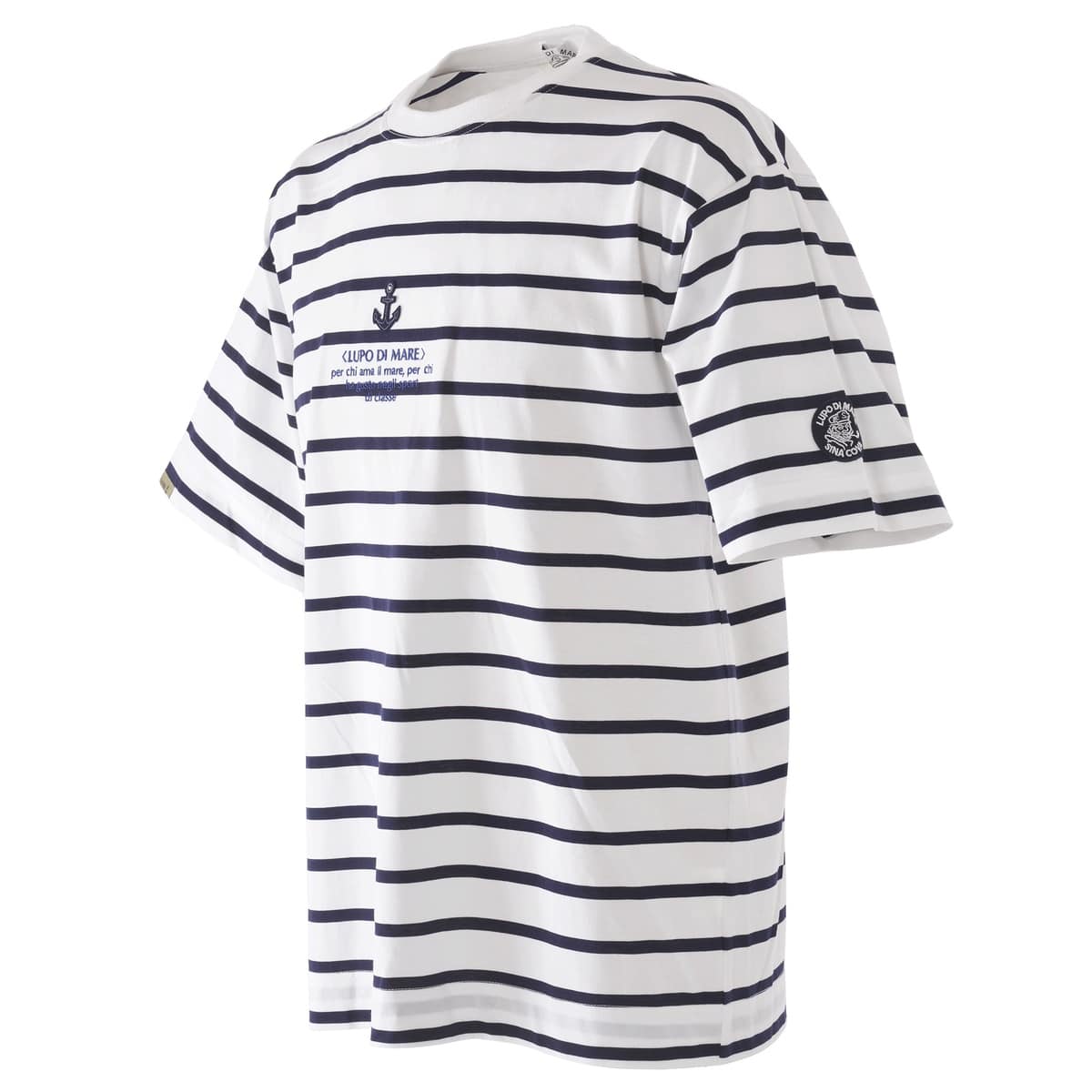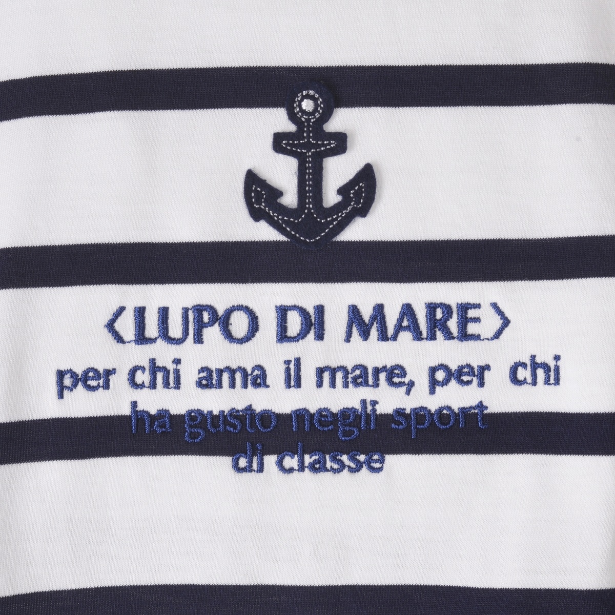 胸元にイカリワッペンとLUPO DI MARE刺繍をあしらったドロップショルダーTシャツです。