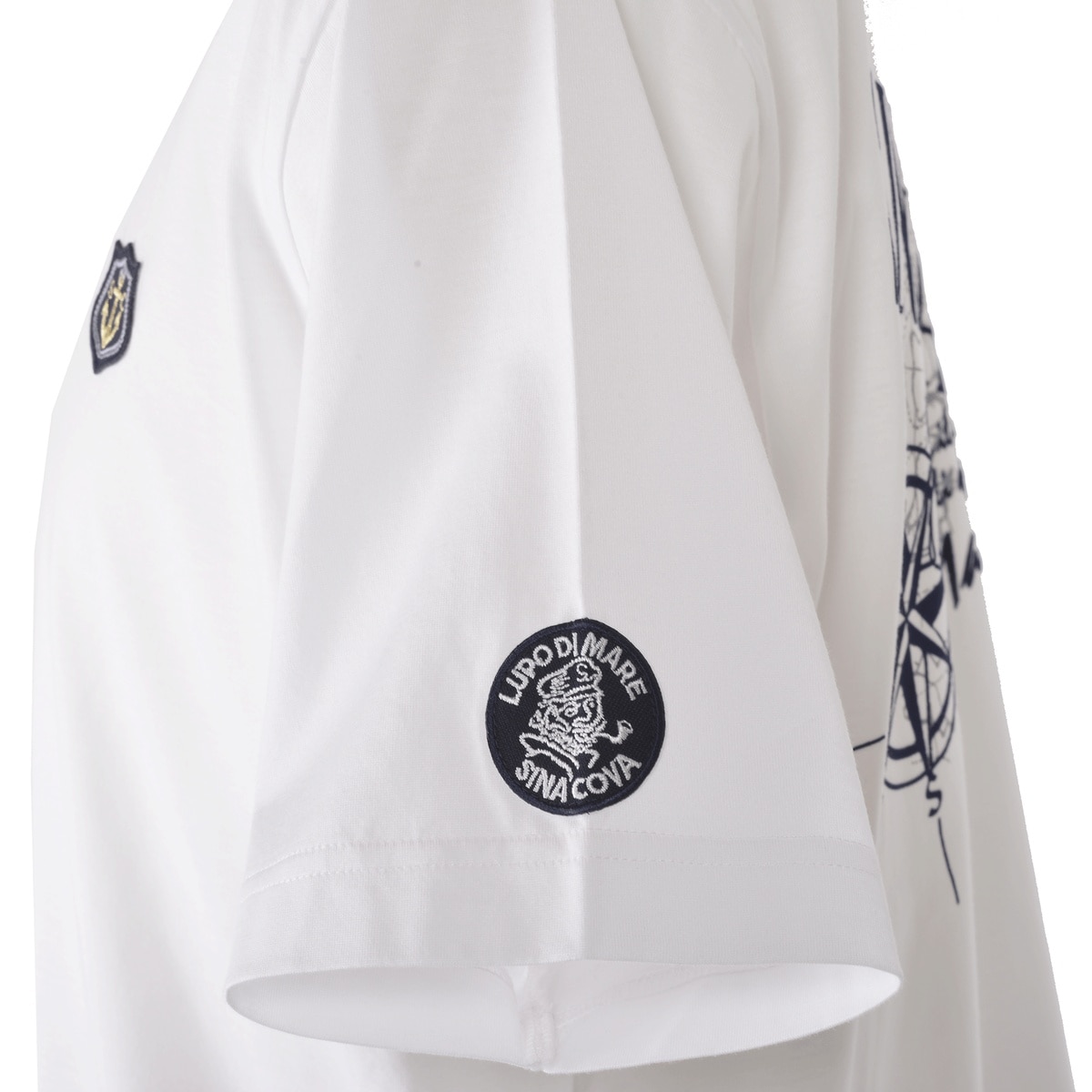 左胸に小さめのSCワッペン、背面に羅針盤とキャプテンモチーフのプリントをあしらった半袖Tシャツです。