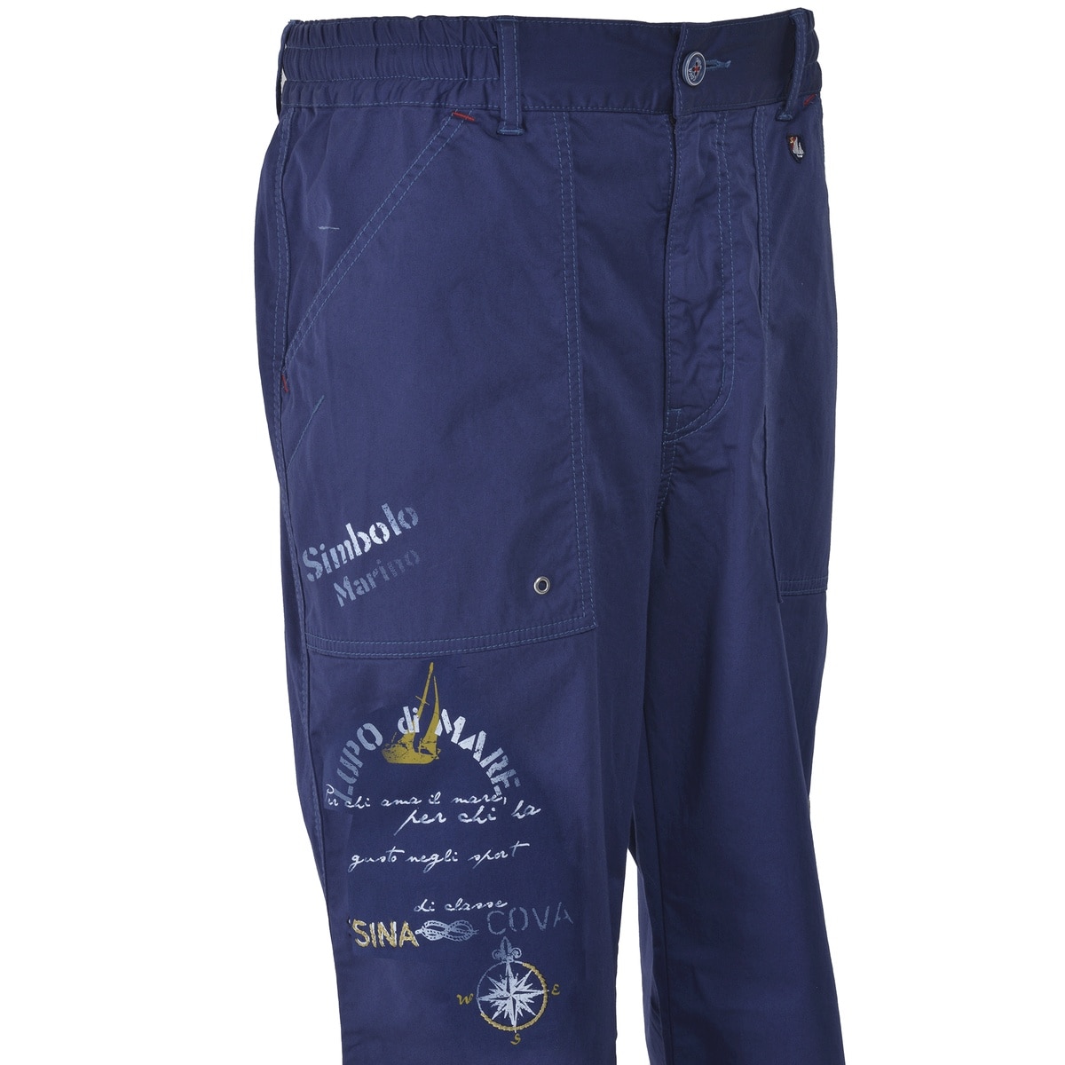 サテン組織によるなめらかな光沢と、ストレッチ性のある柔らかで伸びのあるストレートシルエットのマリンパンツです。右フロント部にシナコバならではの大胆なプリントや刺繍を施していて、ワンポイントアクセントとして楽しめます。またフロントポケット下部には鳩目を配置することで、マリン感を演出しています。その他、タックボタンやバックポケットのボタンにもこだわっていて、船舶の舷光をボタンの色で表現しています。ウエストゴム仕様かつウエスト紐で腰回りのサイズ調整も容易な為、お好みの着丈で着用いただけます。・ストレートシルエット・マリンパンツ・プリントアクセント・マリンコーデ・サテン生地・フロントポケット×2、バックポケット×2サテン・・・糸の浮き沈みの変化が少ない編み方で編まれた生地の総称。特徴として、すべすべ感や光沢感が現れるのが特徴的