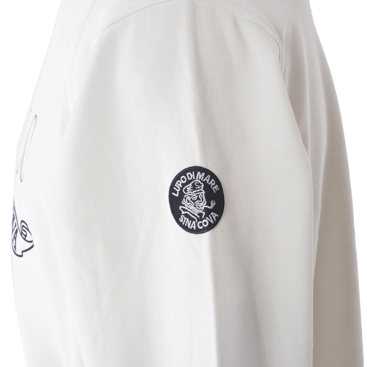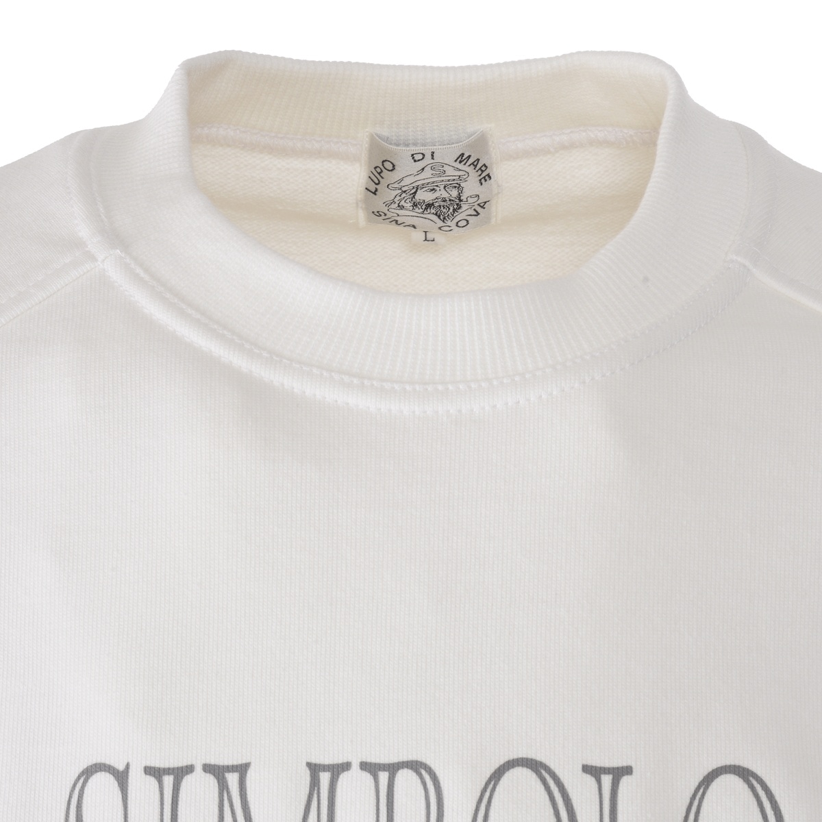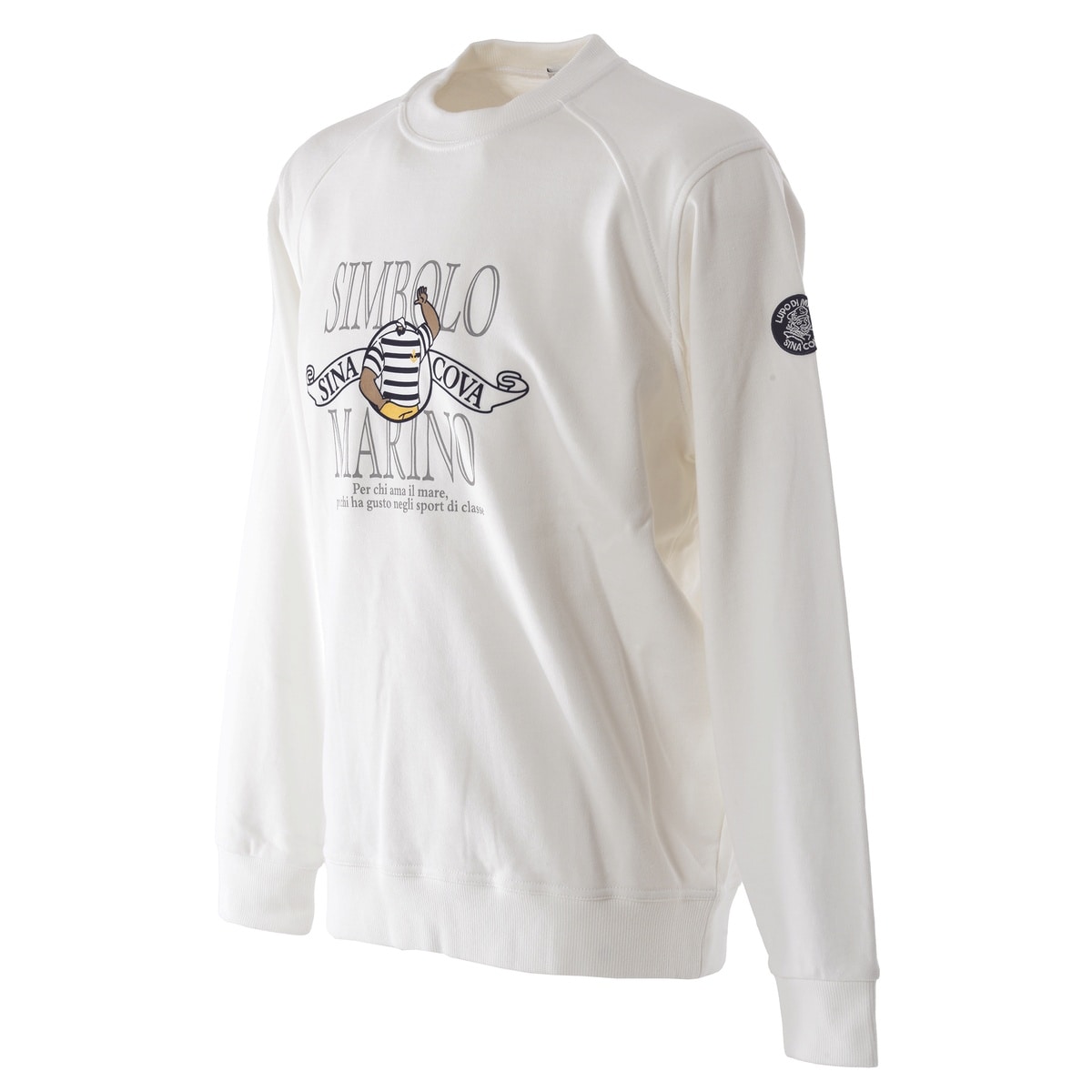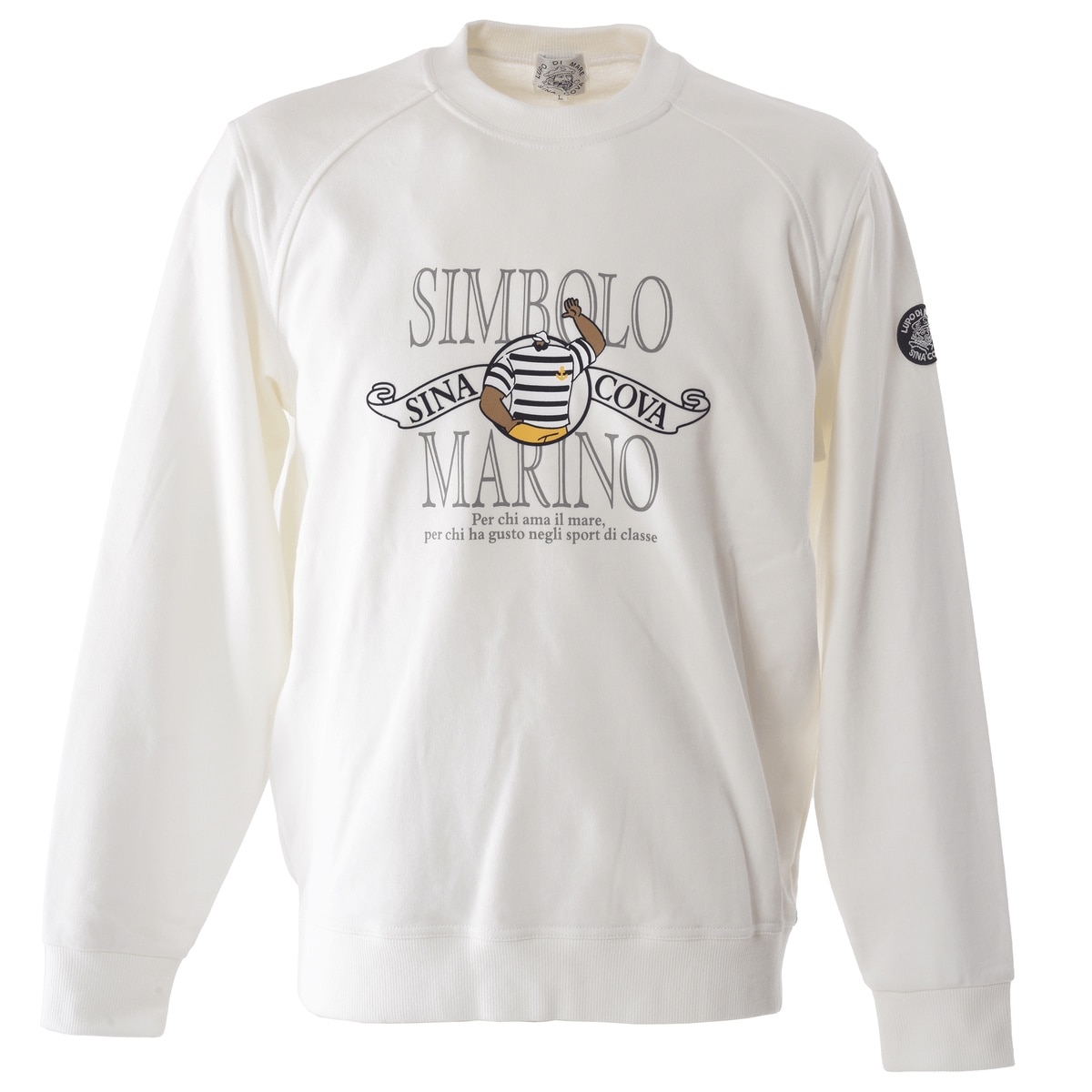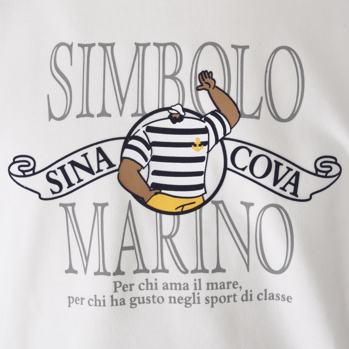 シナコバキャプテンとSIMBOLO MARINO文字をラバー、フロッキープリントでデザインしたクルーネックトレーナーです。