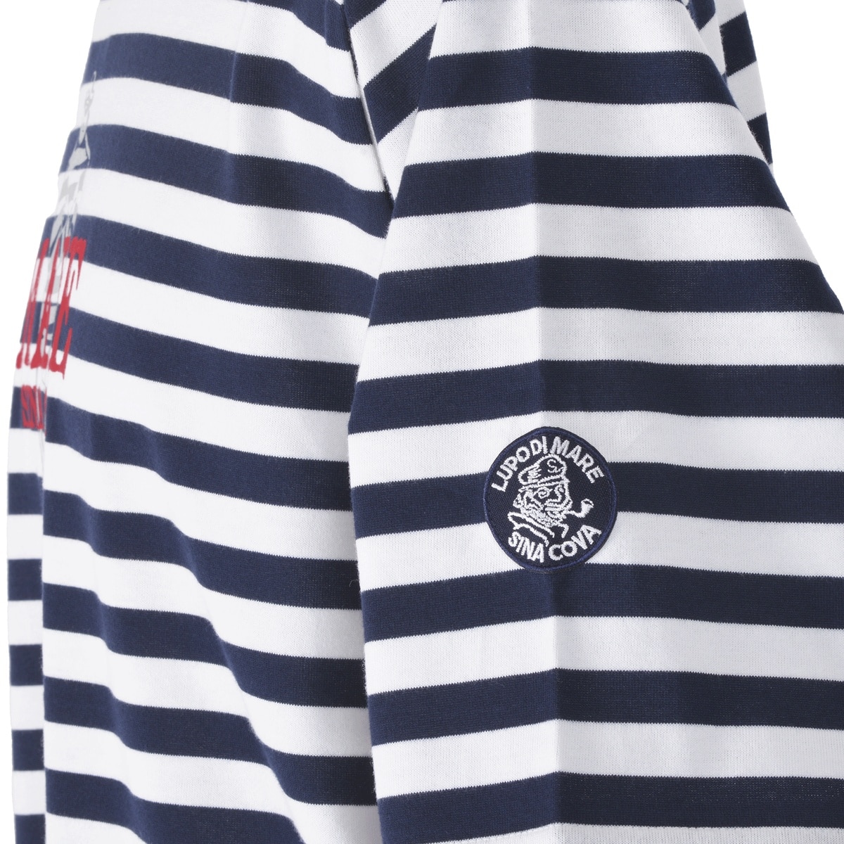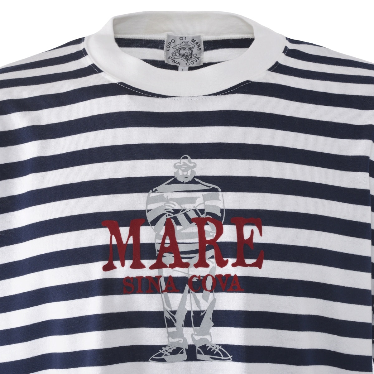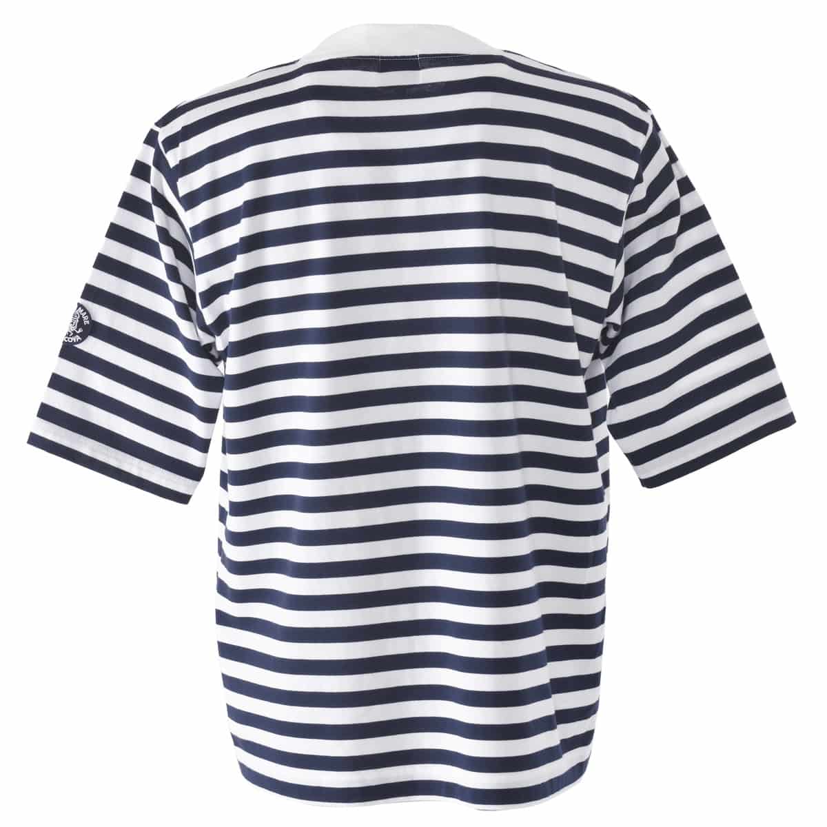 フロント部分に大きくキャプテンシルエットをプリントしたジェノバのボーダー柄5分袖Tシャツです。