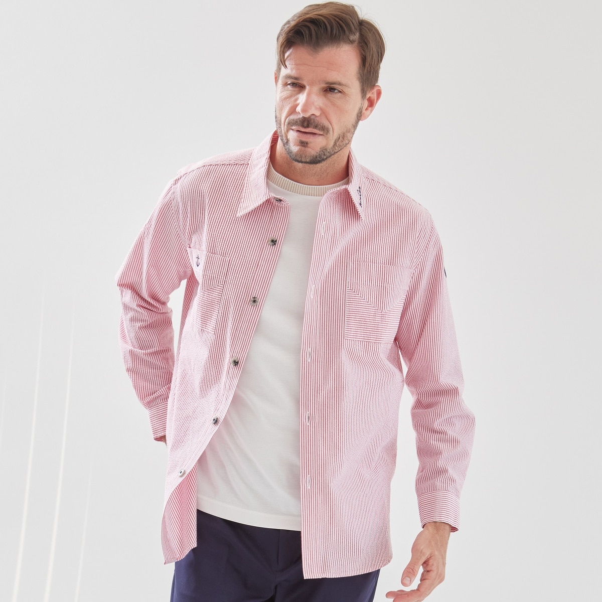 右胸にイカリ刺繍、衿にロゴ刺繍をあしらったCPOシャツジャケットです。