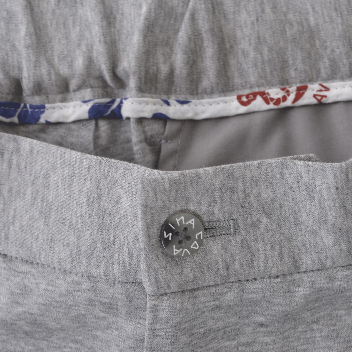 腰回りはゴム仕様となっており、内側にはパイピング部にはトロピカル柄の裏地を使用しています。