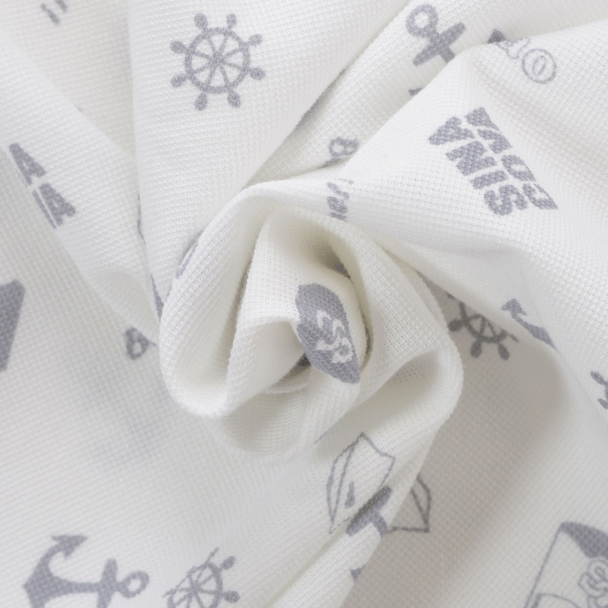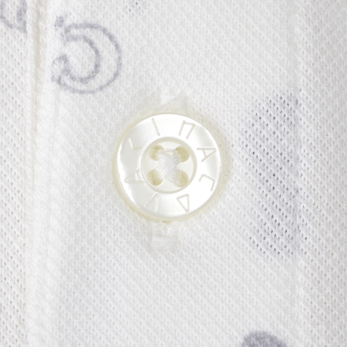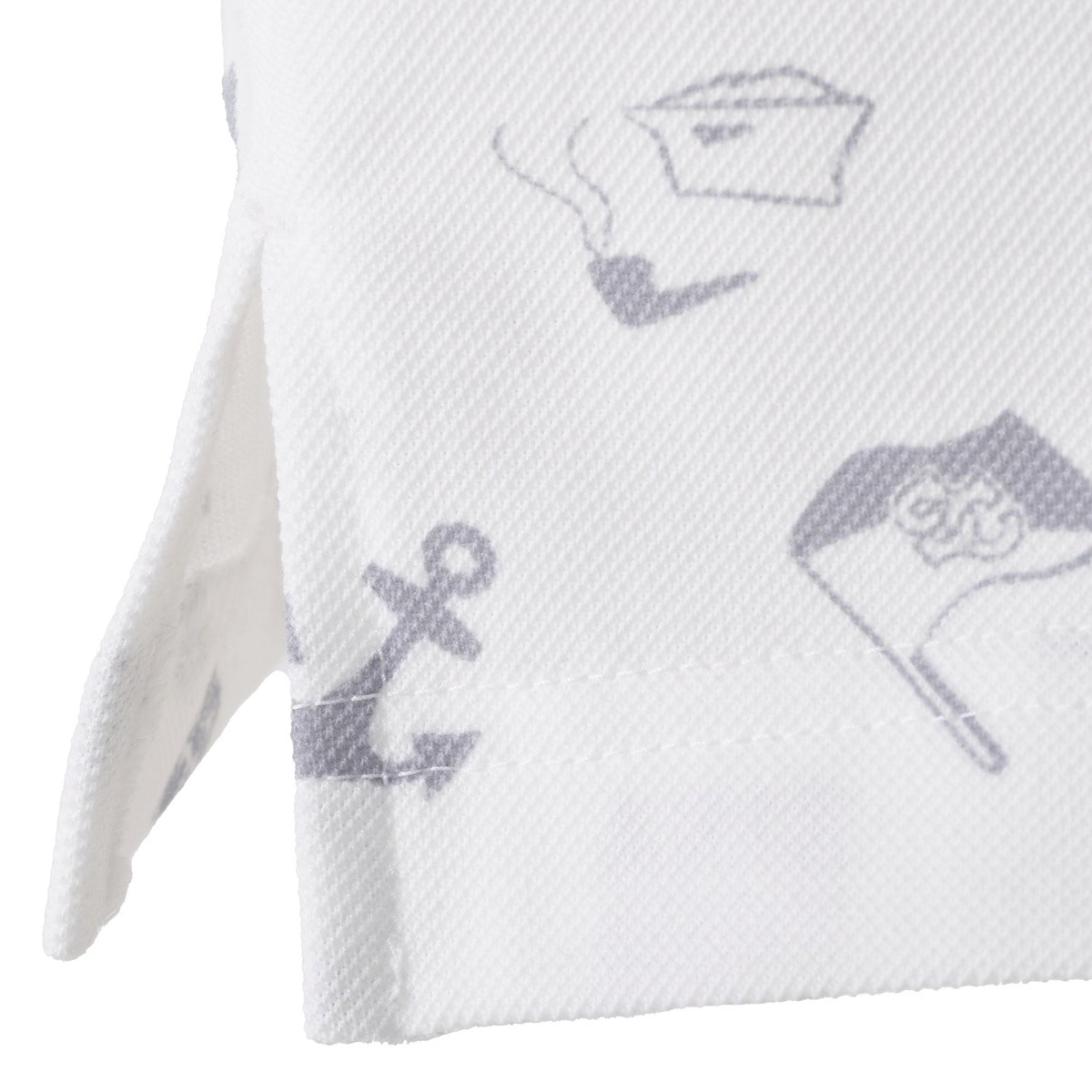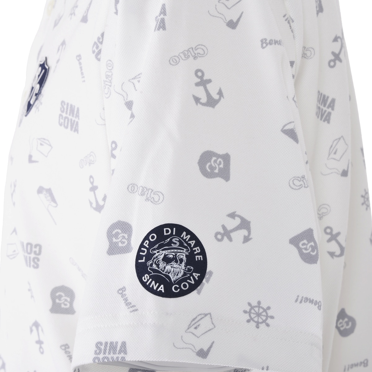 全体にイカリやパイプ、SCロゴなどのマリンモチーフをちりばめたPOP柄をあしらった、半袖ボタンダウンポロシャツです。