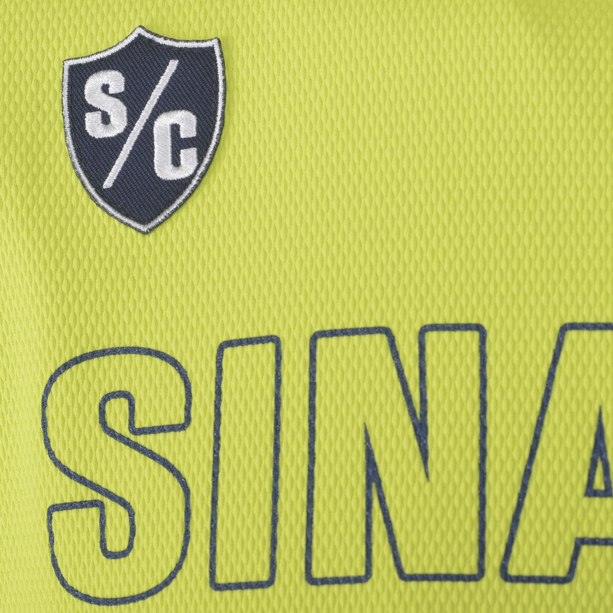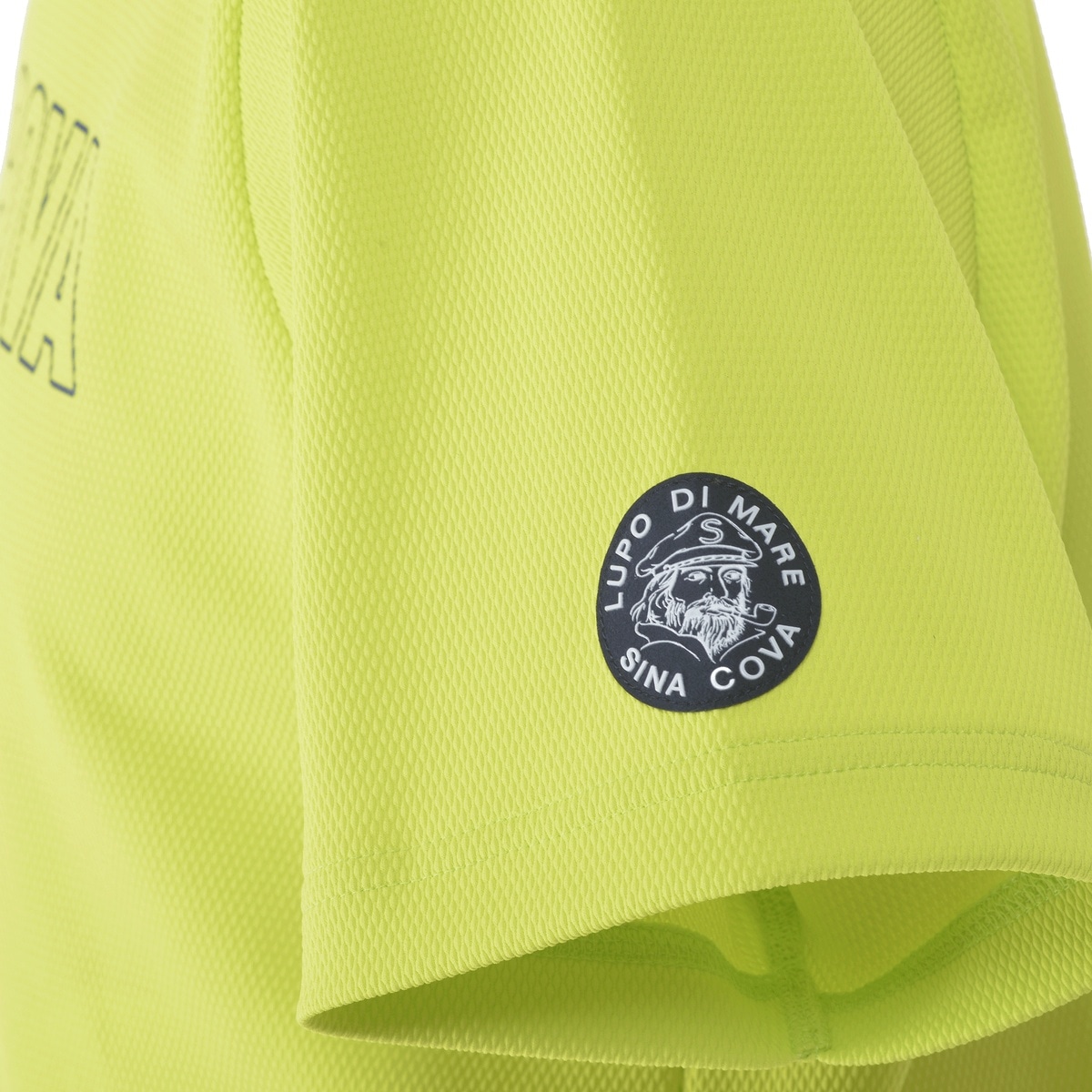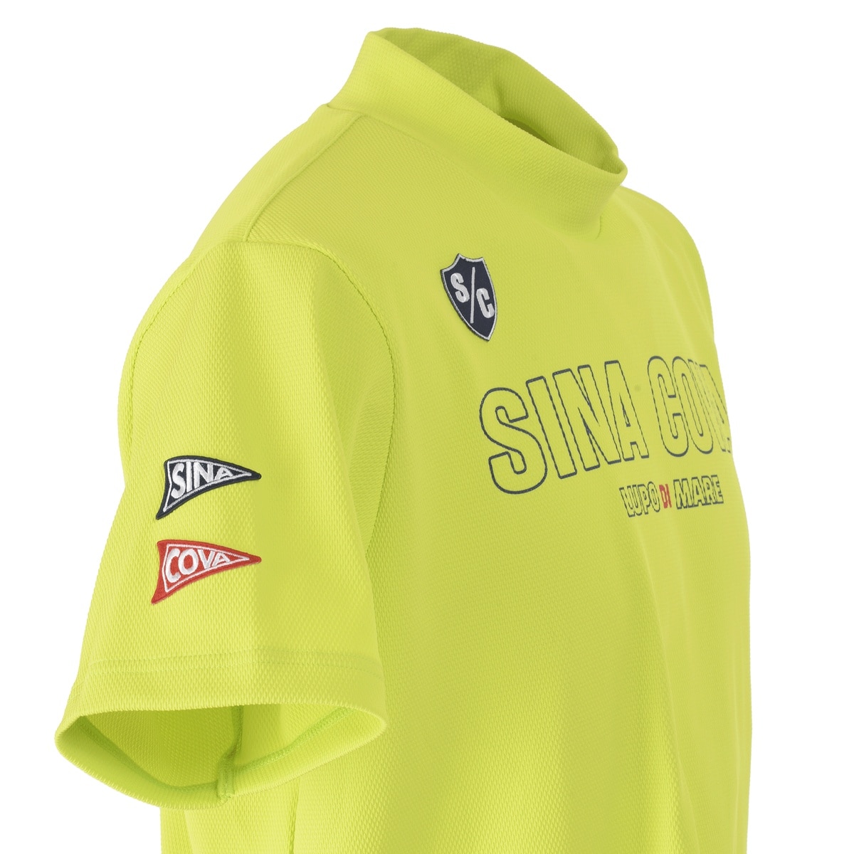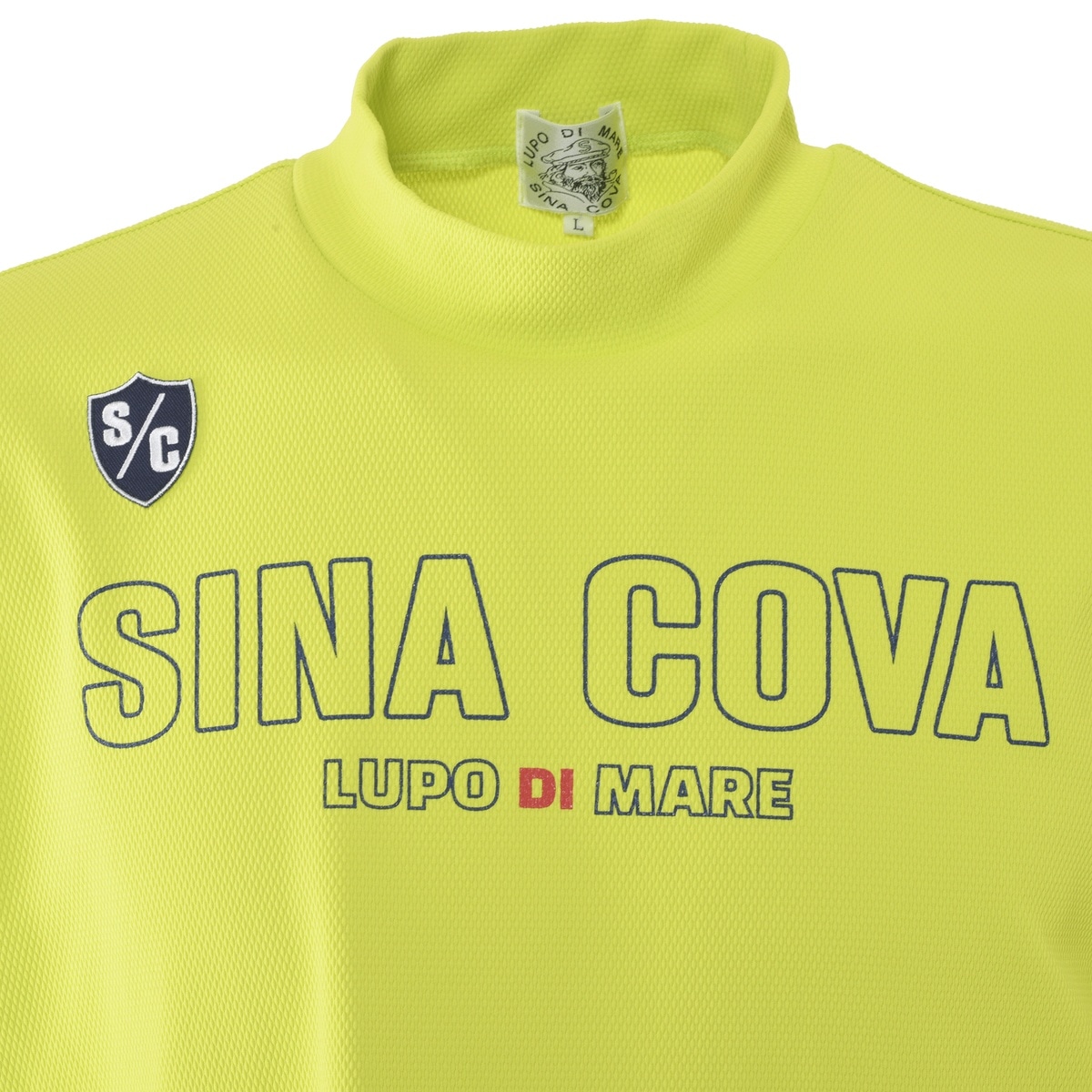 フロントにSINA COVA LUPO DI MARE(イタリア語:海の狼=パイプをくわえた船長)とSCロゴ、右袖部にSINA COVAのフラッグワッペン、左袖部に定番のシナコバロゴを施したハイネック半袖Tシャツです。