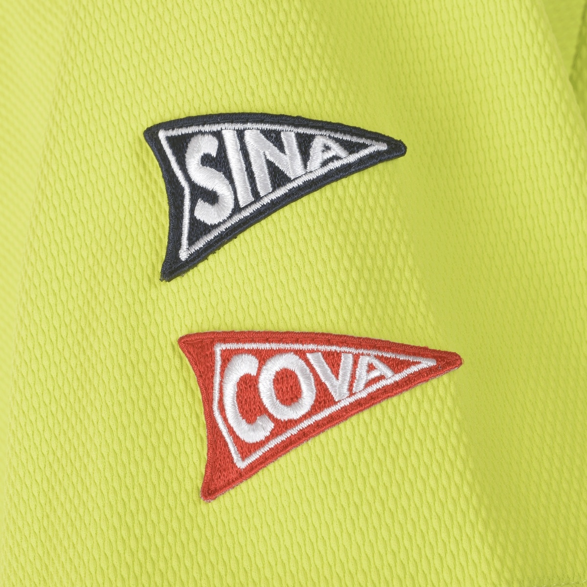 フロントにSINA COVA LUPO DI MARE(イタリア語:海の狼=パイプをくわえた船長)とSCロゴ、右袖部にSINA COVAのフラッグワッペン、左袖部に定番のシナコバロゴを施したハイネック半袖Tシャツです。吸水速乾、UVカット、遮熱、抗菌防臭を持つ多機能素材「ポップコーンニット」を使用しており、激しいスポーツ中でも快適な着心地を保ちます。・ハイネック半袖Tシャツ・吸水速乾・UVカット・遮熱・抗菌防臭・ポップコーンニット【SINA COVA 2024 Spring & Summer Style Book】掲載商品モデル着用カラー:ホワイト男性 身長:180cm / 着用:L size