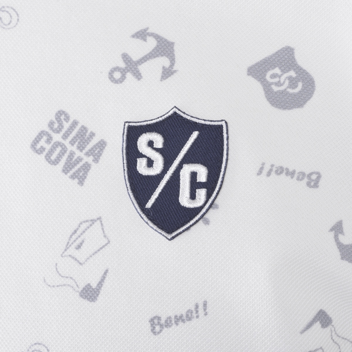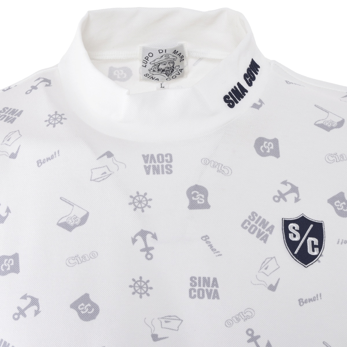 シナコバのシンボルである錨や舵輪など、マリンモチーフを全体にプリントし、左袖にはシナコバのブランドロゴをチョイスした、マリンテイストを存分に感じることができるハイネックTシャツです。
