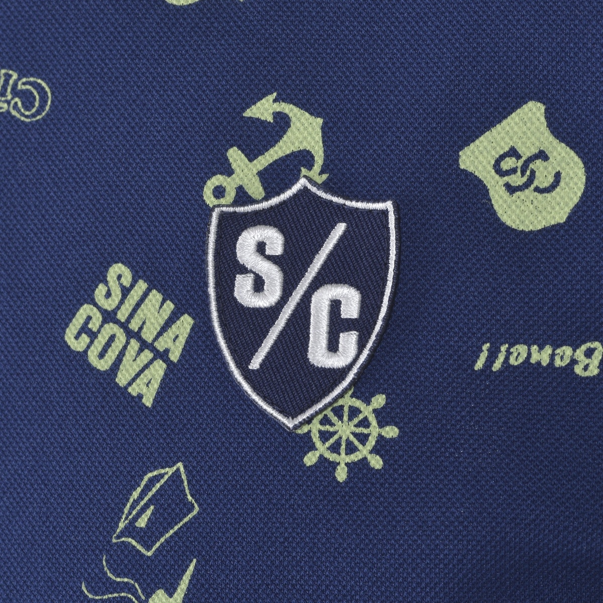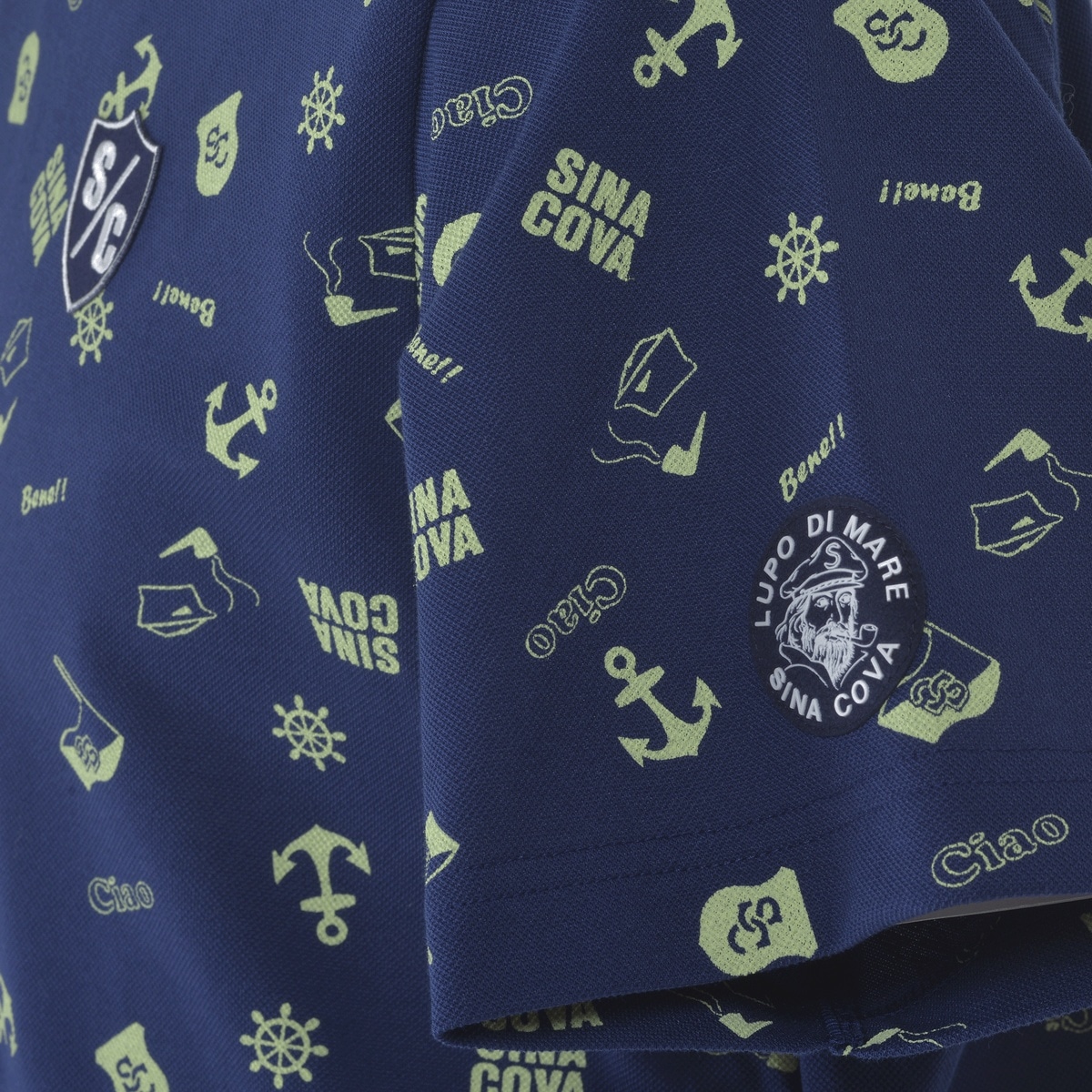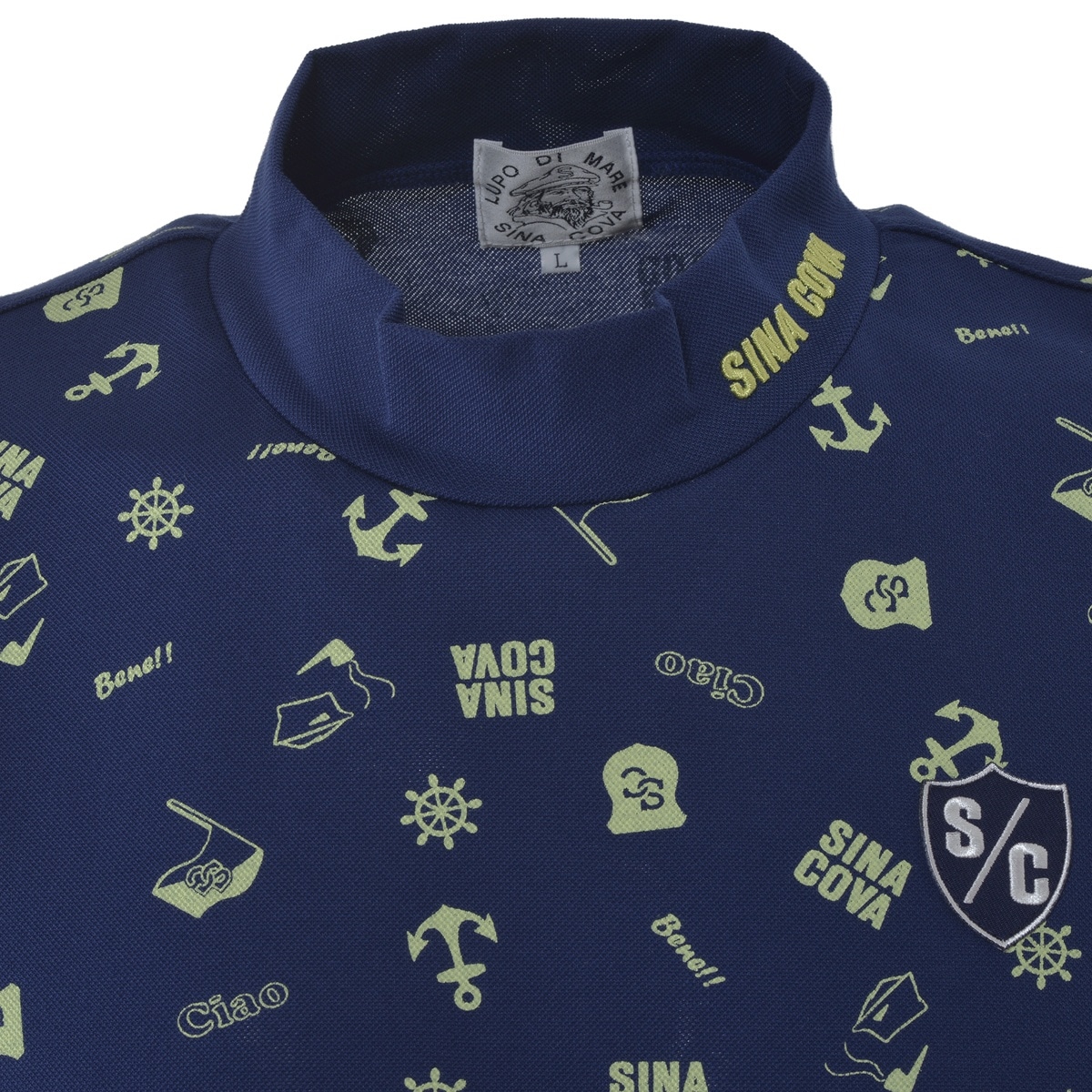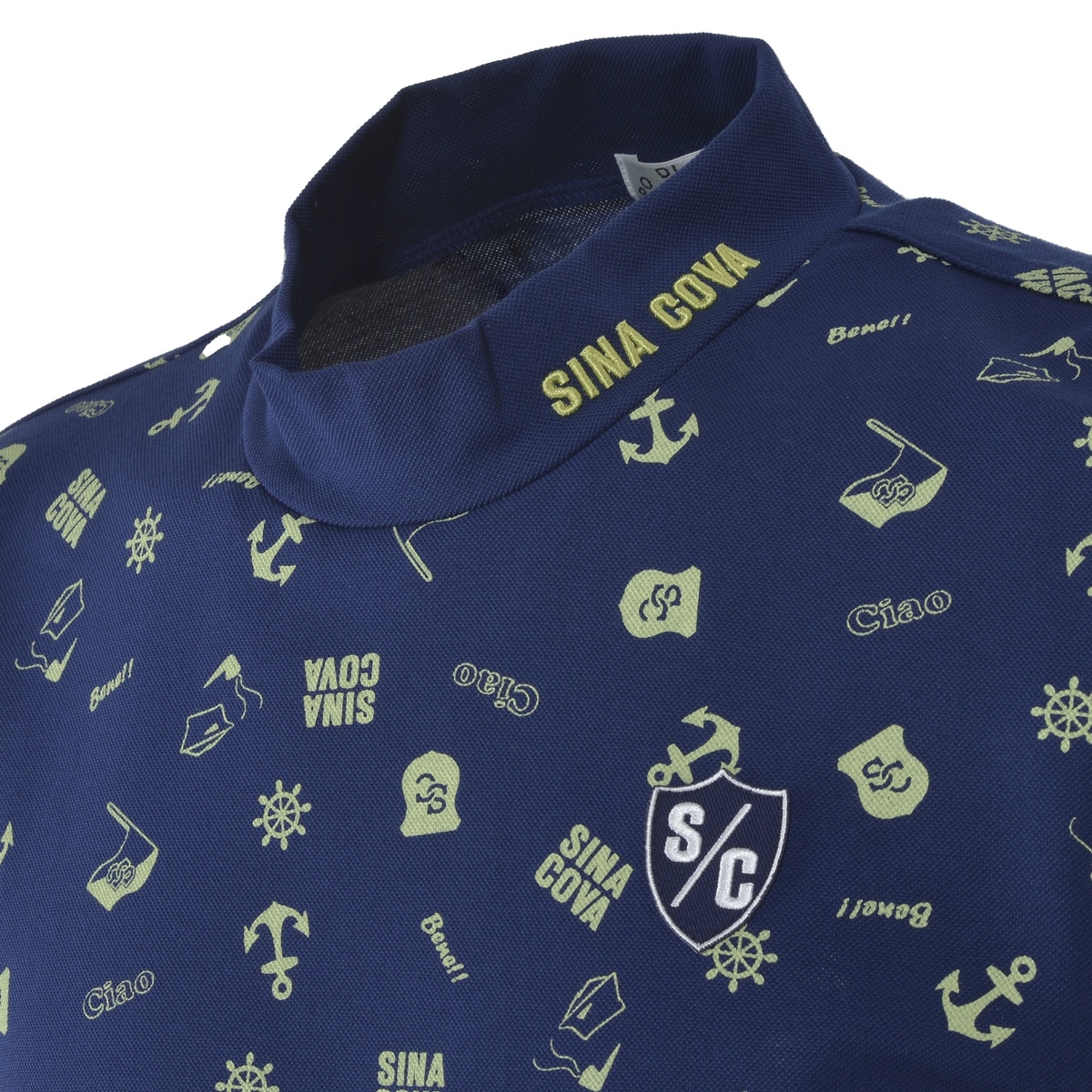 シナコバのシンボルである錨や舵輪など、マリンモチーフを全体にプリントし、左袖にはシナコバのブランドロゴをチョイスした、マリンテイストを存分に感じることができるハイネックTシャツです。