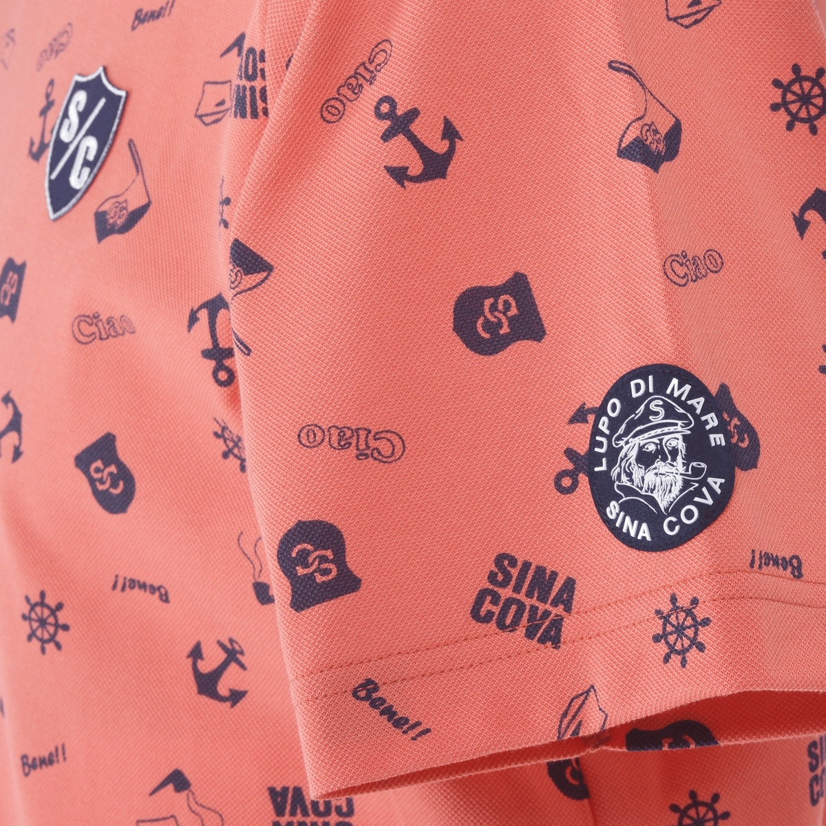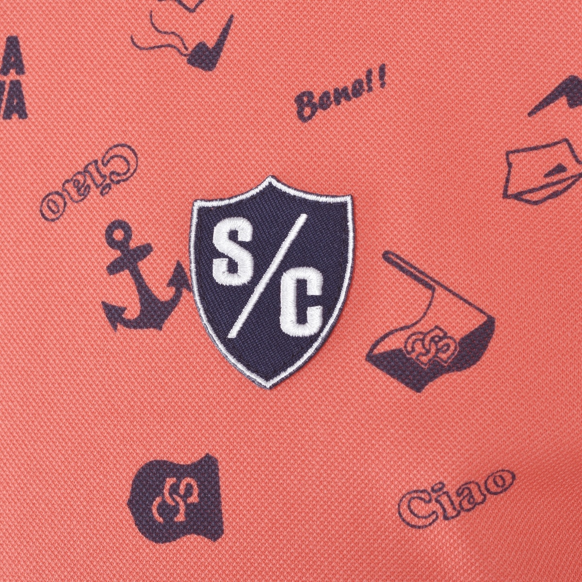 シナコバのシンボルである錨や舵輪など、マリンモチーフを全体にプリントし、左袖にはシナコバのブランドロゴをチョイスした、マリンテイストを存分に感じることができるハイネックTシャツです。