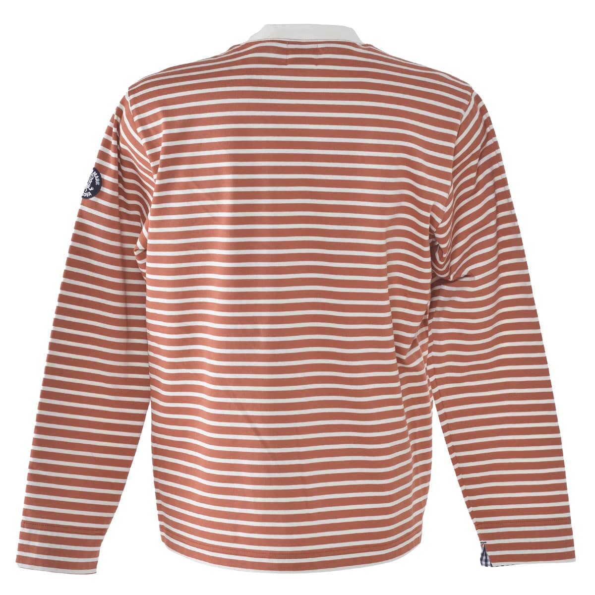 フロントに「LUPO DO MARE」「SINA COVA」のチェーンステッチ刺繍、袖裏にはギンガムチェックの別生地をデザインしたボーダー長袖Tシャツです。生地に適度なハリと厚みのあるバスク天竺生地を使用し一枚着でもご利用しやすい一着です。・サイズS~LL展開・ボーダー柄・男女兼用・やや厚め生地・袖裏地ギンガムチェック柄【SINA COVA 2024 Autumn & Winter Style Book】掲載商品モデル着用カラー:オレンジ女性 身長:159㎝ / 着用:S size