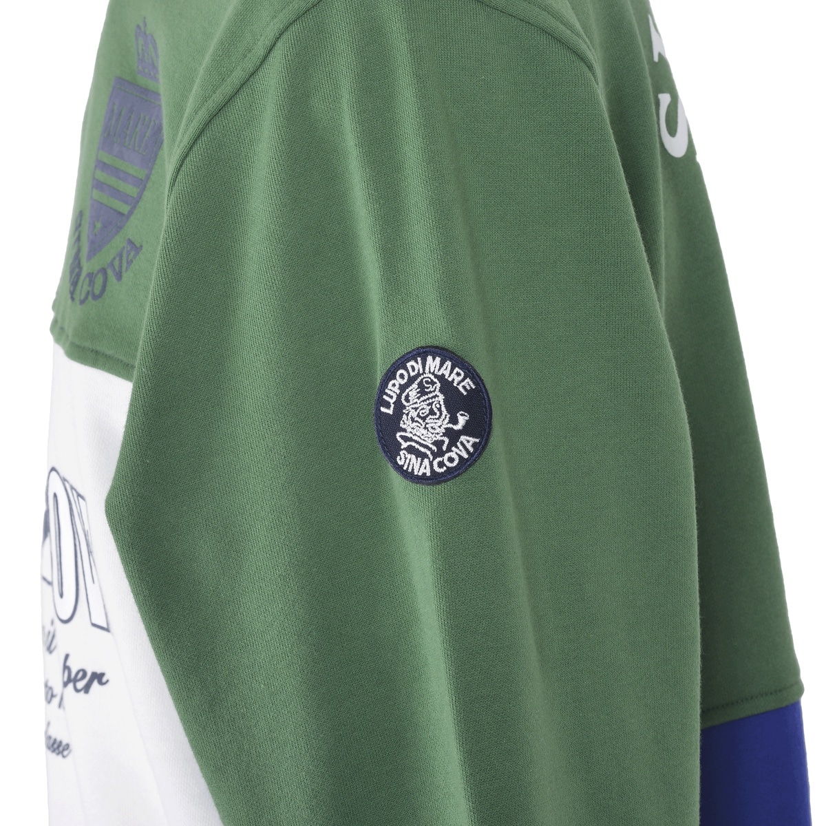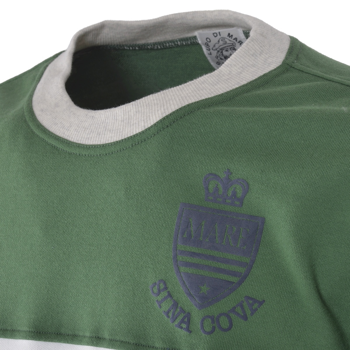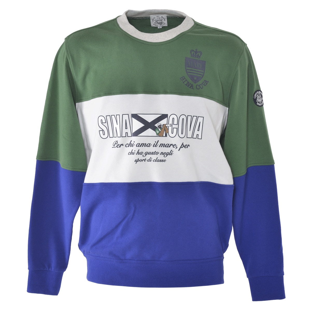 クラブチームのユニフォームのようなシナコバオリジナルのプリントをデザインした切替トレーナーです。シナコバらしいきれいな発色と配色は一枚着でも存在感のある一着です。素材にはコーマ糸ミニ裏毛の薄過ぎず厚過ぎない生地を使用し長いシーズン使用できるトレーナーです。・薄過ぎず厚過ぎないスウェット生地・切り替えデザイン・バックプリント有り・春・秋・冬のロングシーズン使用可能
