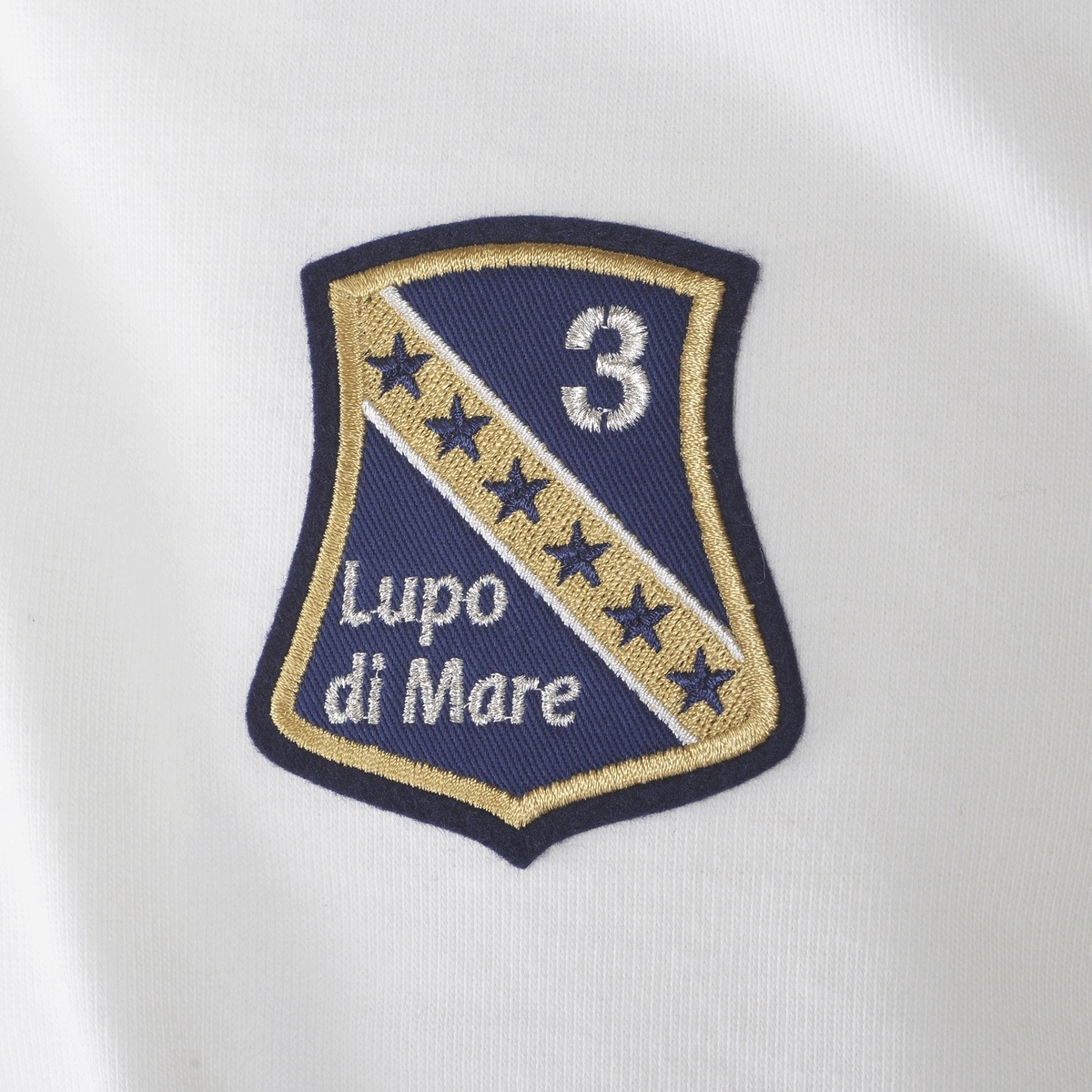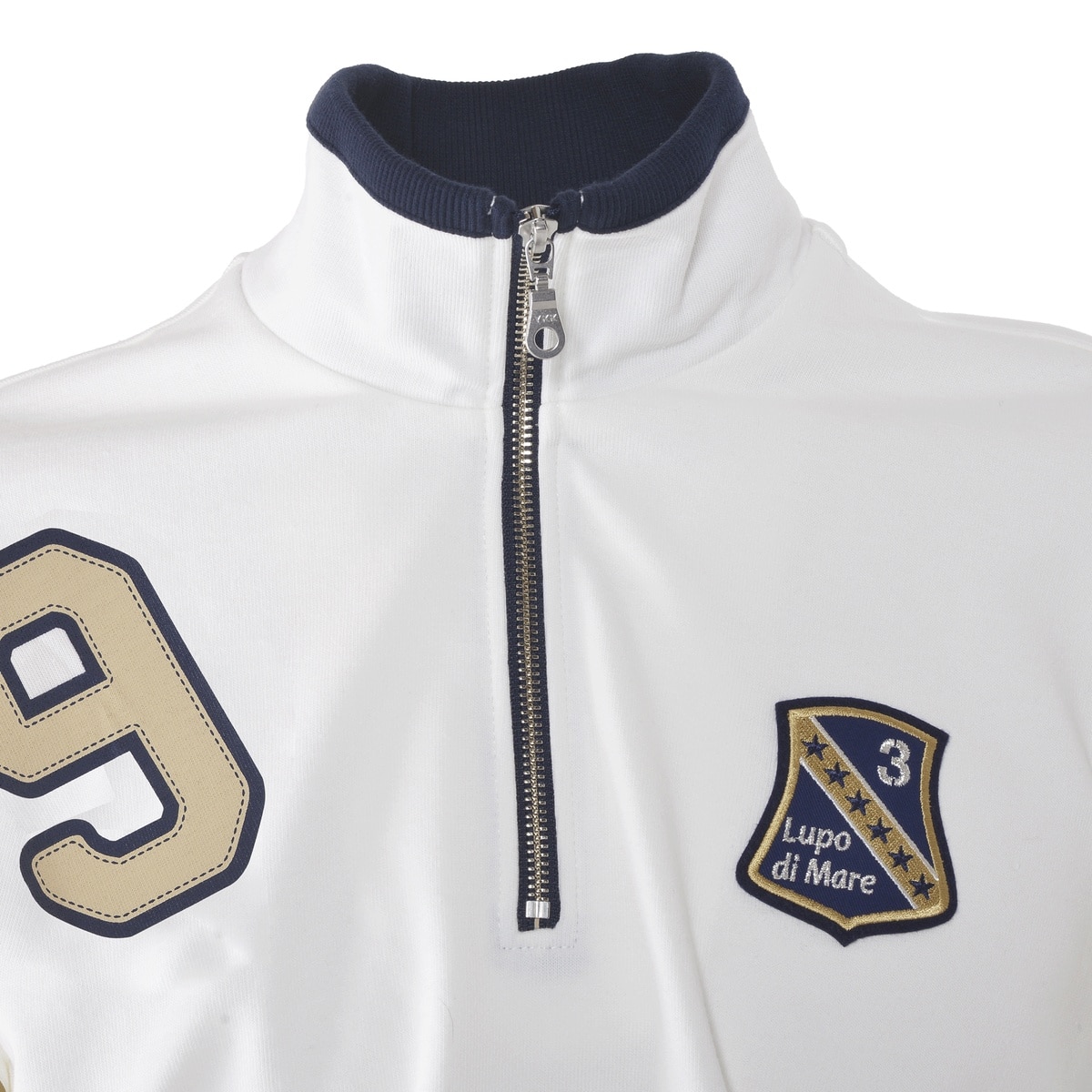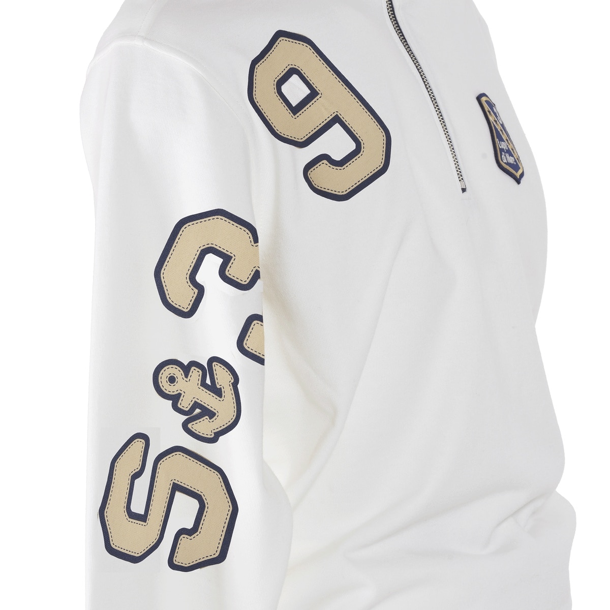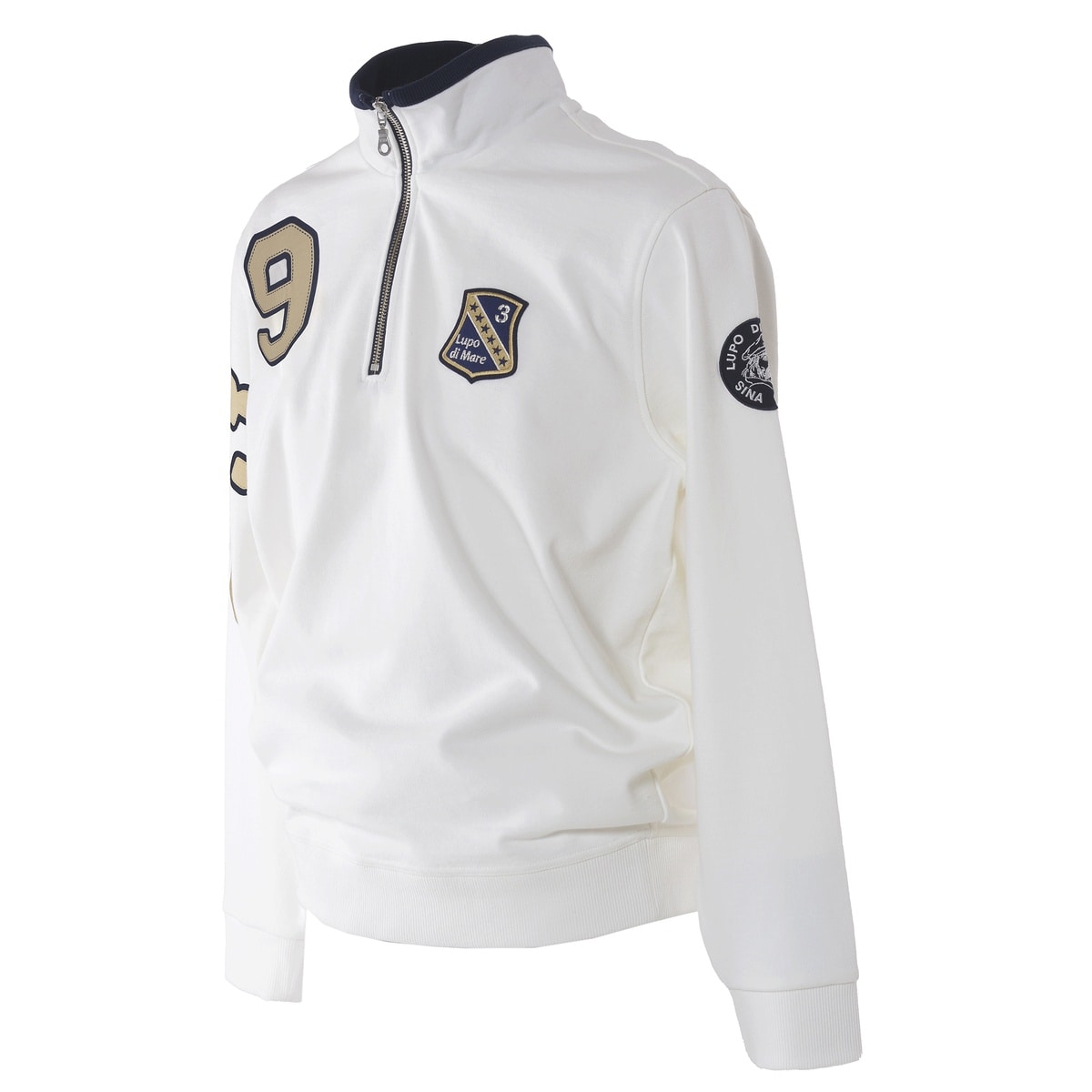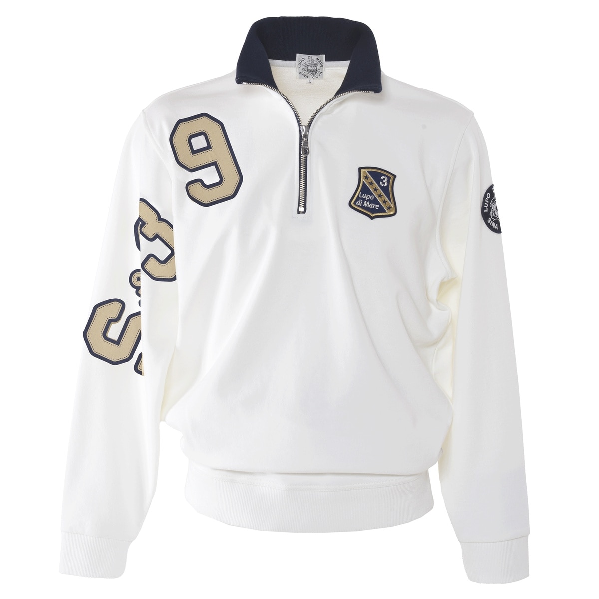 フロントにエンブレムワッペンと腕から肩にかけてSINACOVAの「S」とイタリアの国際番号「39」をプリントでデザインしたハーフジッププルオーバーです。