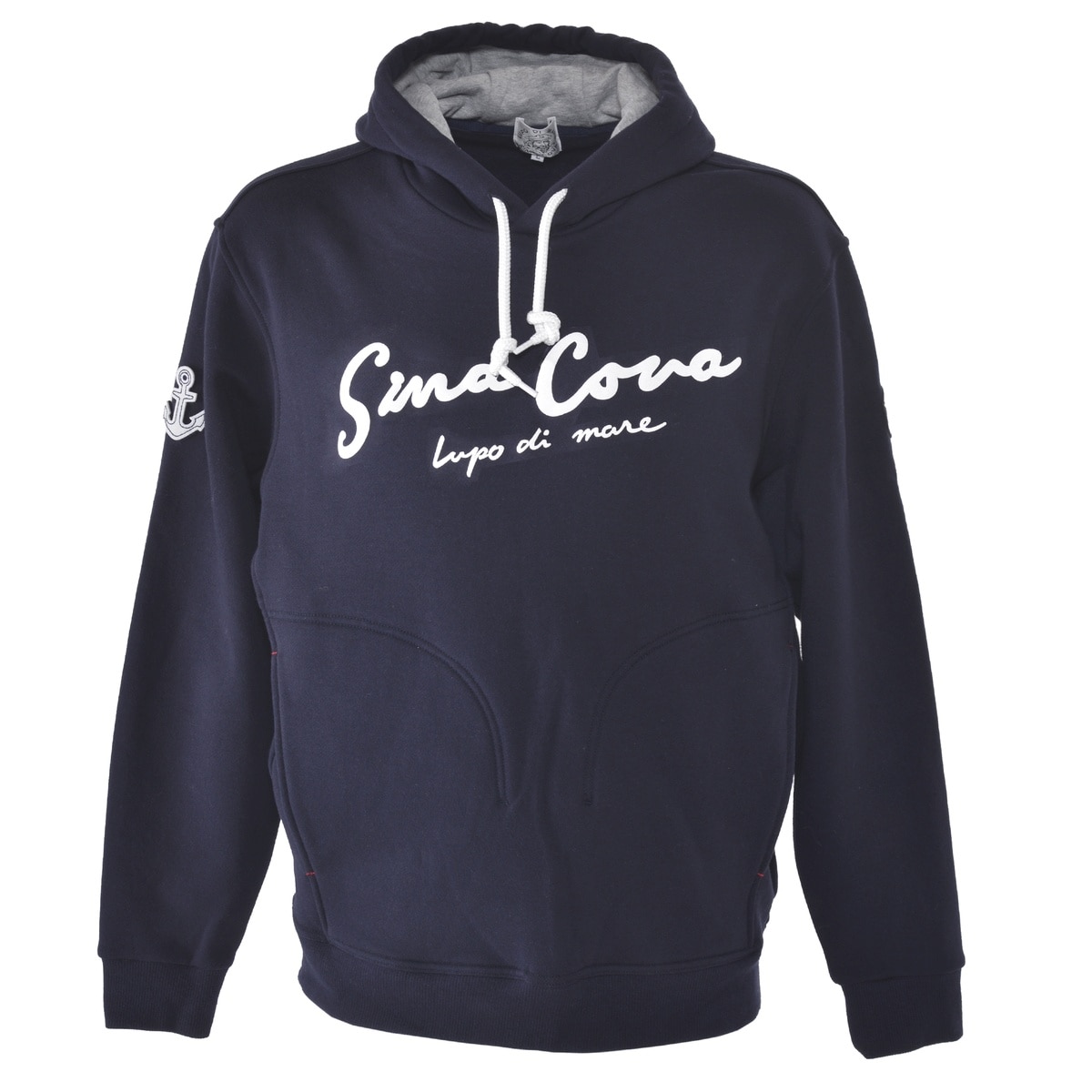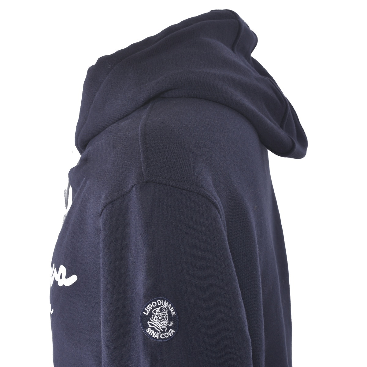 フロントに「SINA COVA」「LUPO DI MARE」のプリント、袖にはイカリの刺繍をデザインしたプルパーカーです