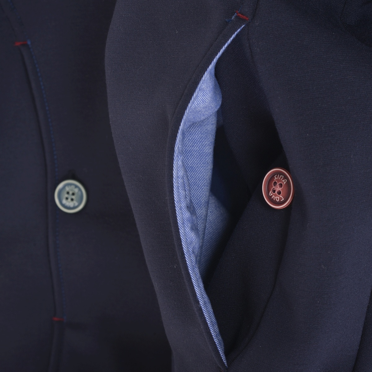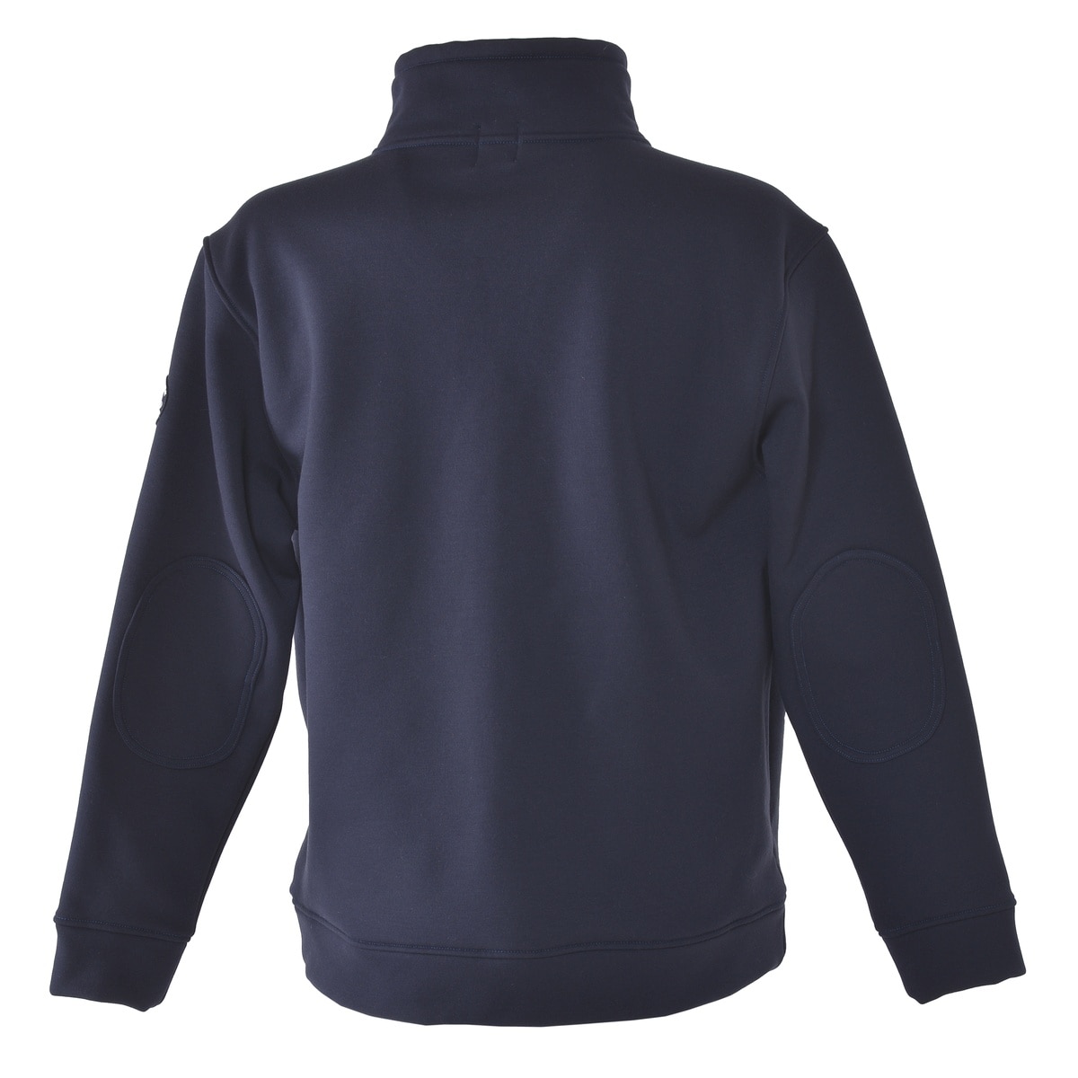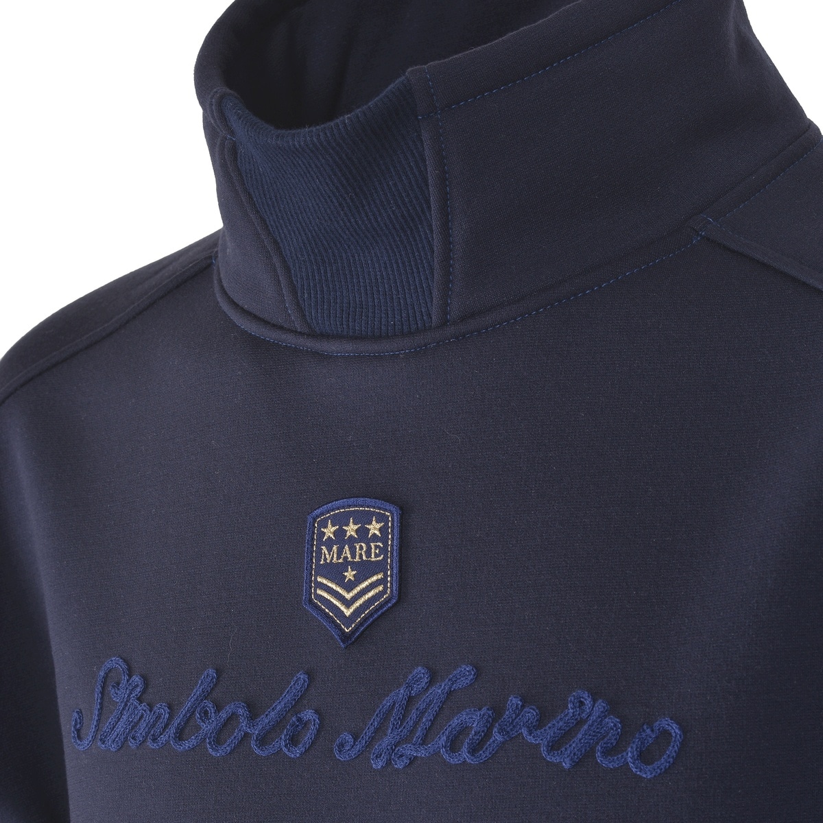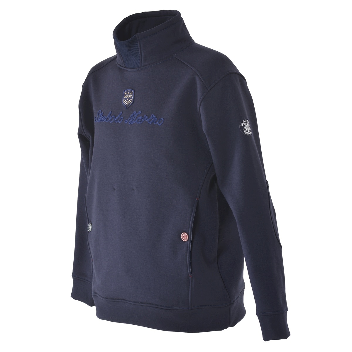 フロントにコード刺繍とワッペン、エルボーパッチやポケットボタンは船の左舷と右舷を表したグリーンとレッドの配色をデザインしたハイネックプルオーバーです。