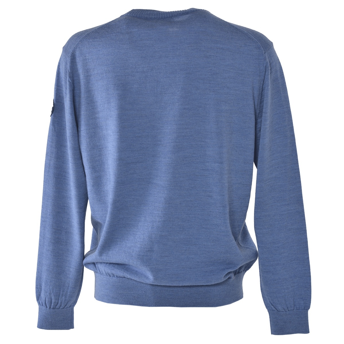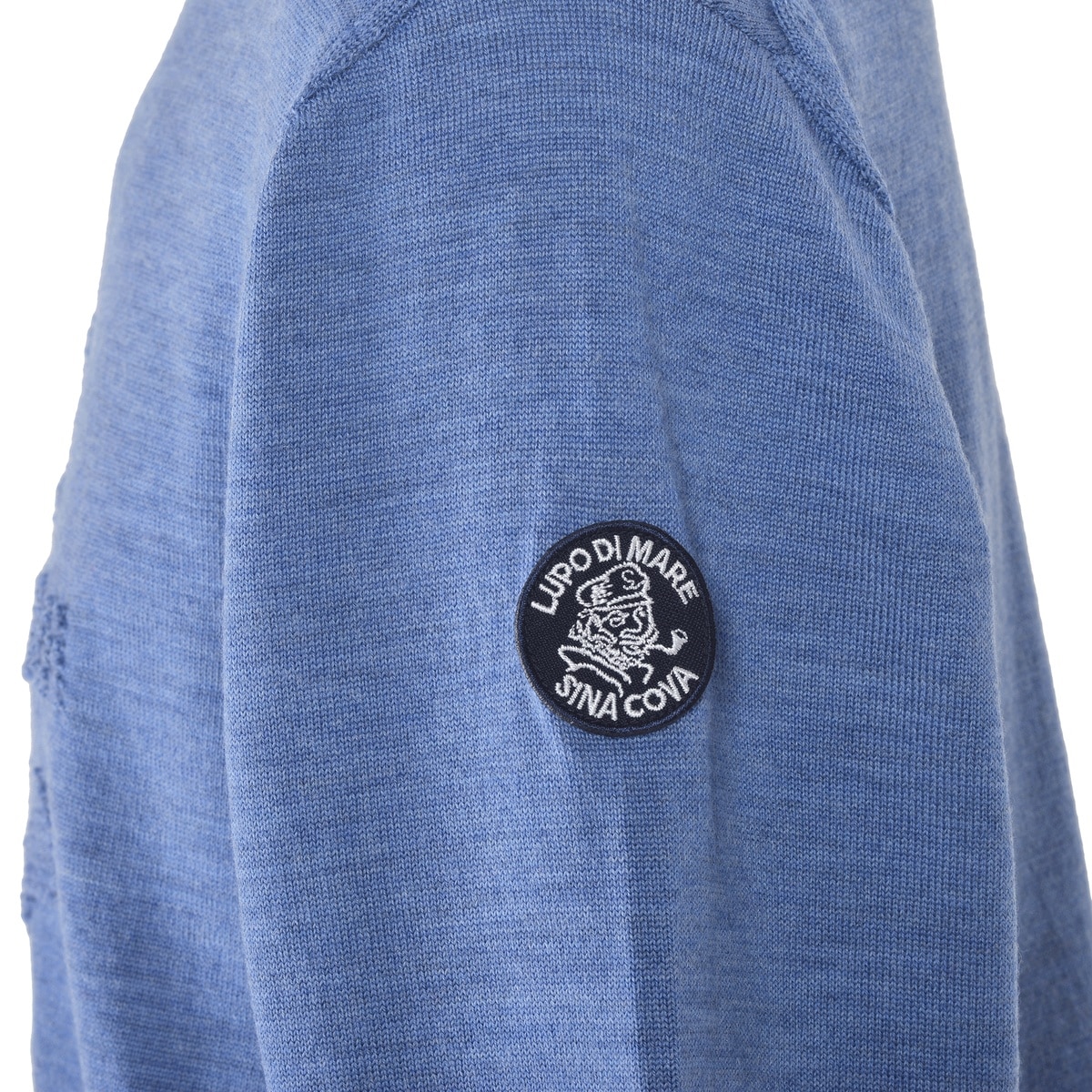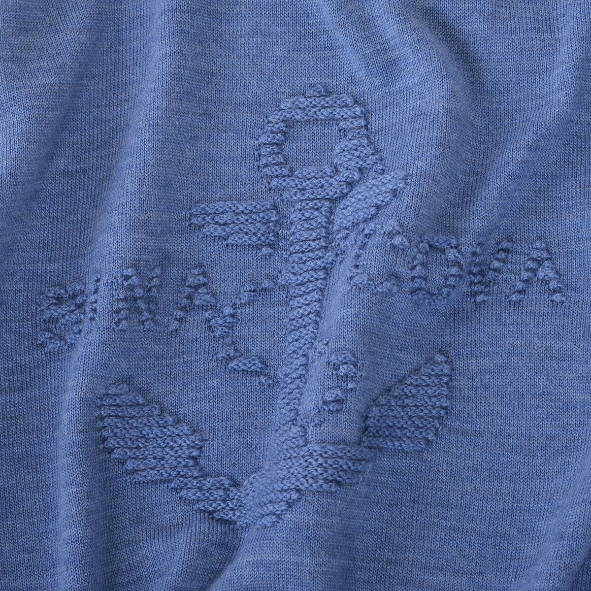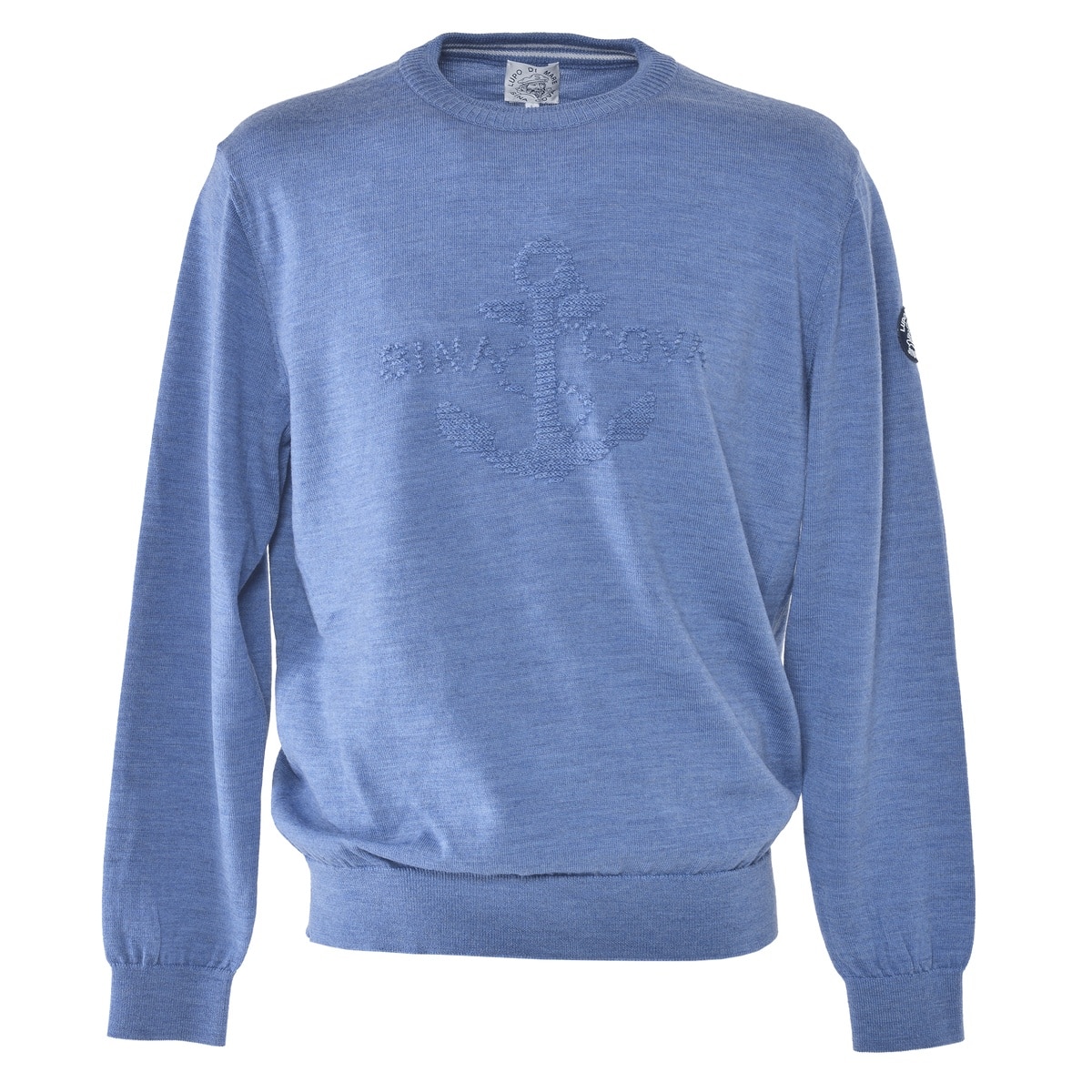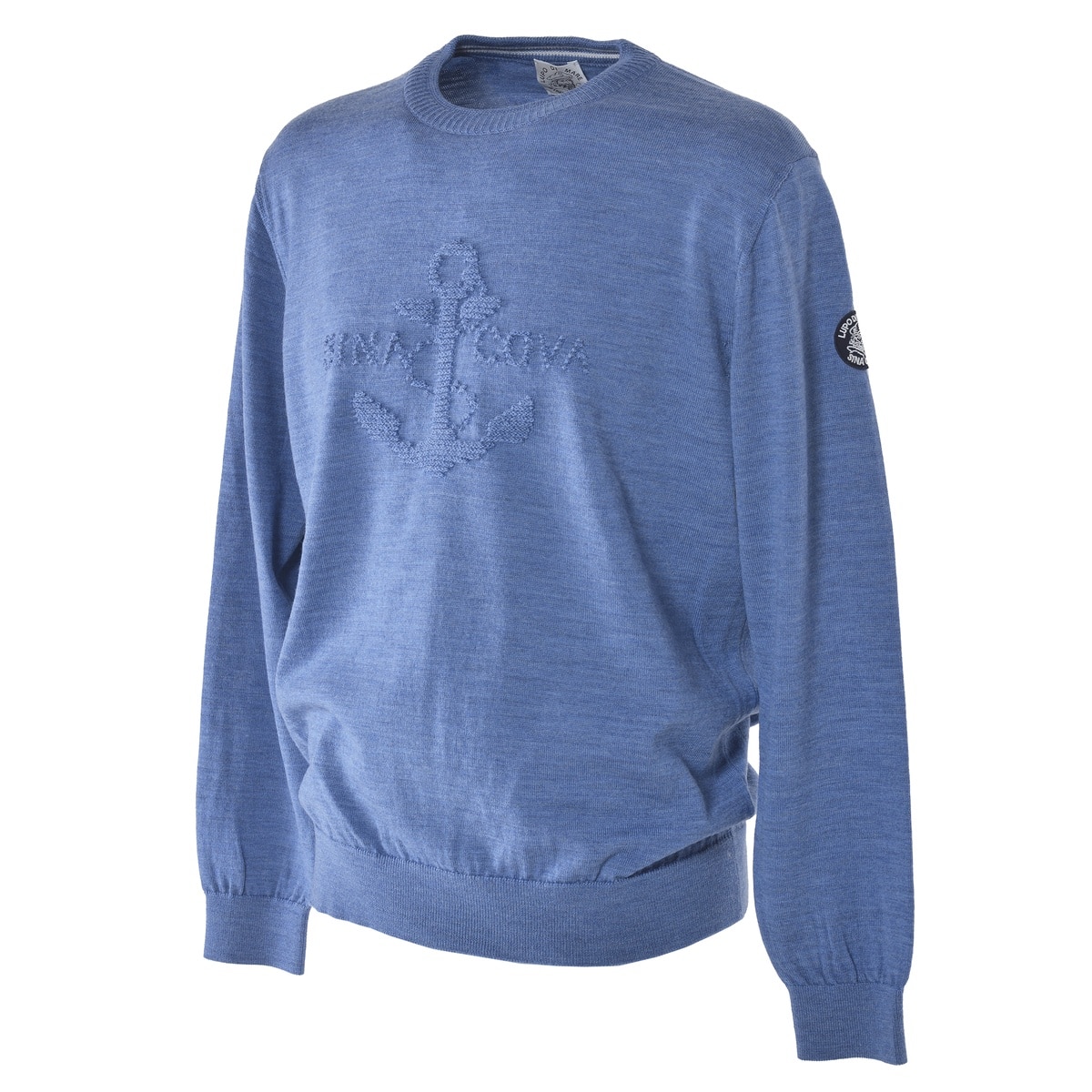 フロントにWジャガードでイカリとロゴをあしらったクルーネックセーター。