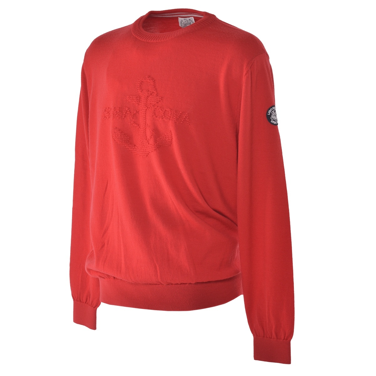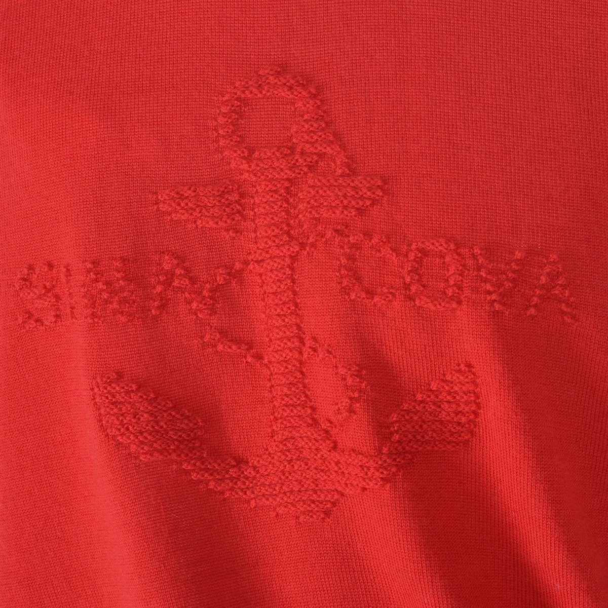 フロントにWジャガードでイカリとロゴをあしらったクルーネックセーター。