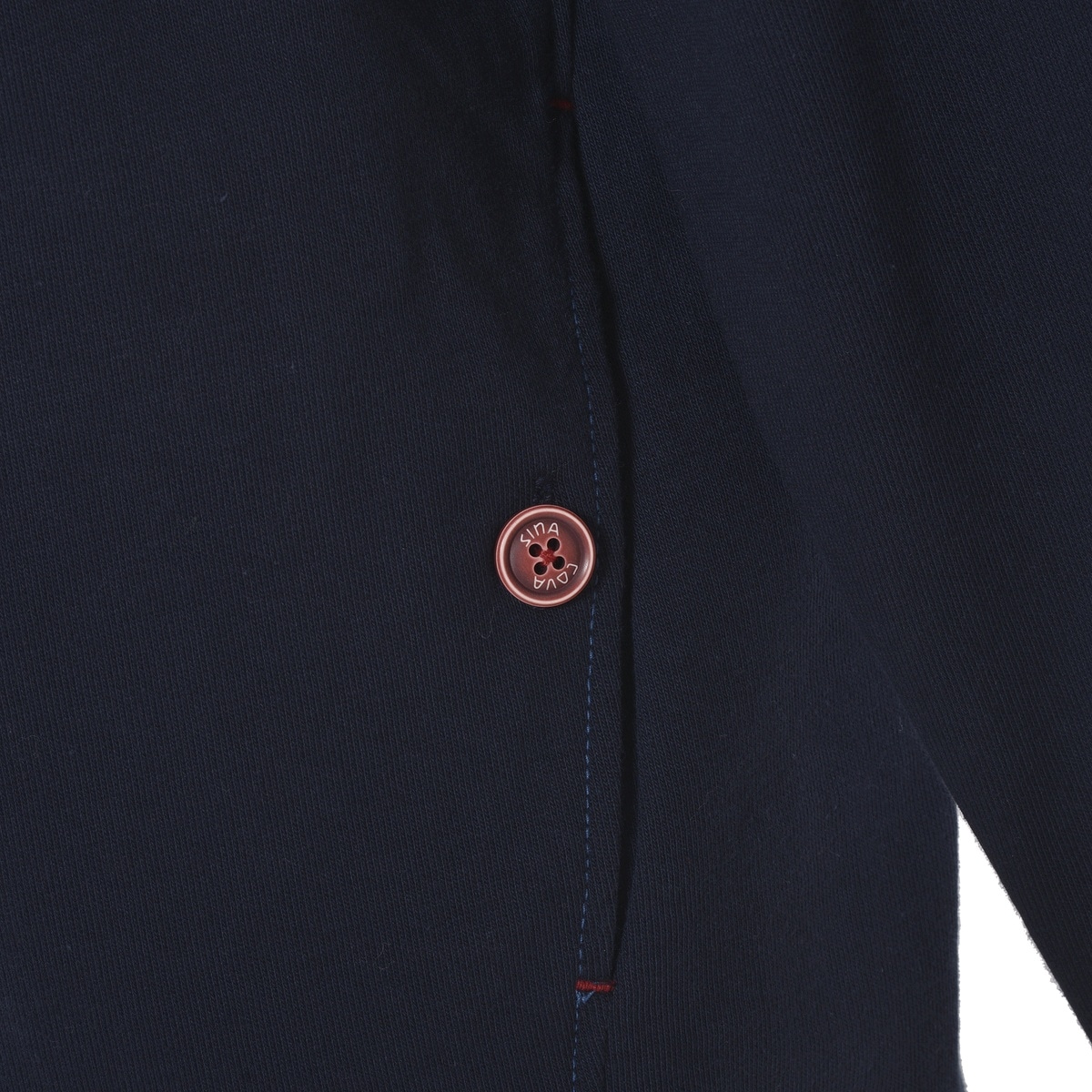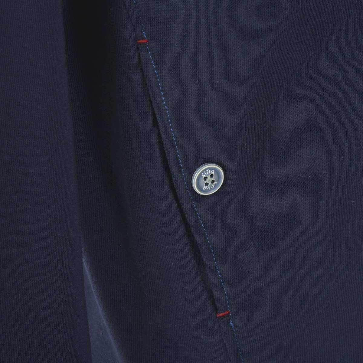 左右ポケット部には配色ボタンを使用し、国際信号の右辺と左辺を演出したこだわりのデザインで大人マリンを演出している為、