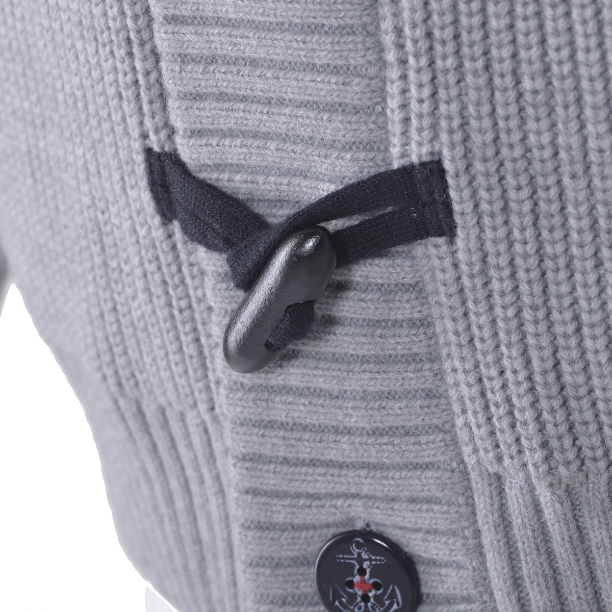 ダッフルジャケットをイメージしたトグルボタンとローゲージで編みこんだ暖かみのあるニットは気軽に羽織れるライトアウターです。
