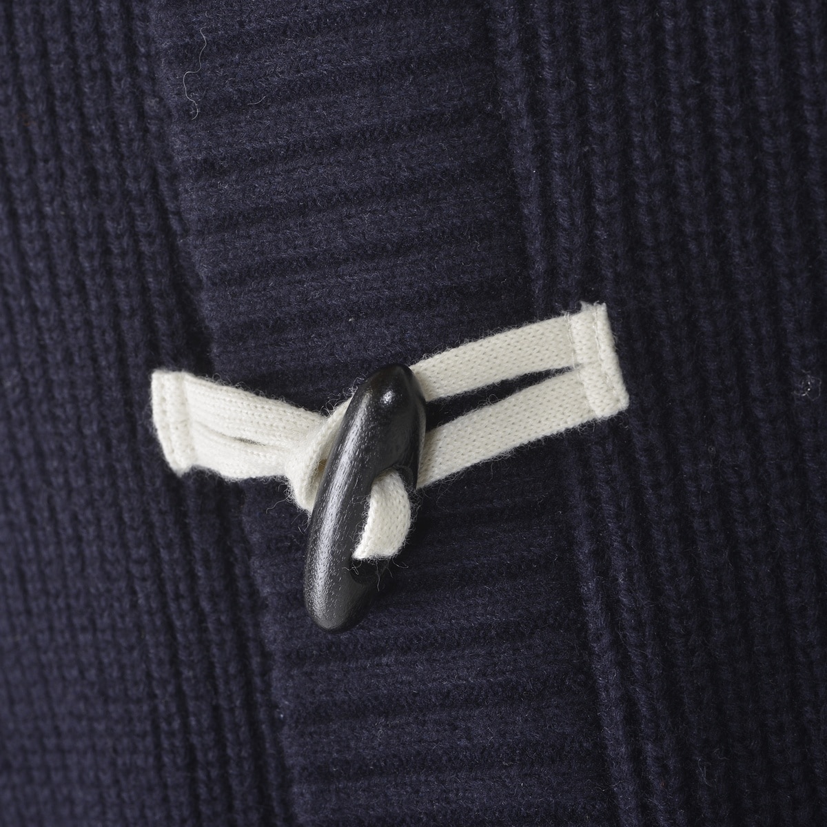 ダッフルジャケットをイメージしたトグルボタンとローゲージで編みこんだ暖かみのあるニットは気軽に羽織れるライトアウターです。