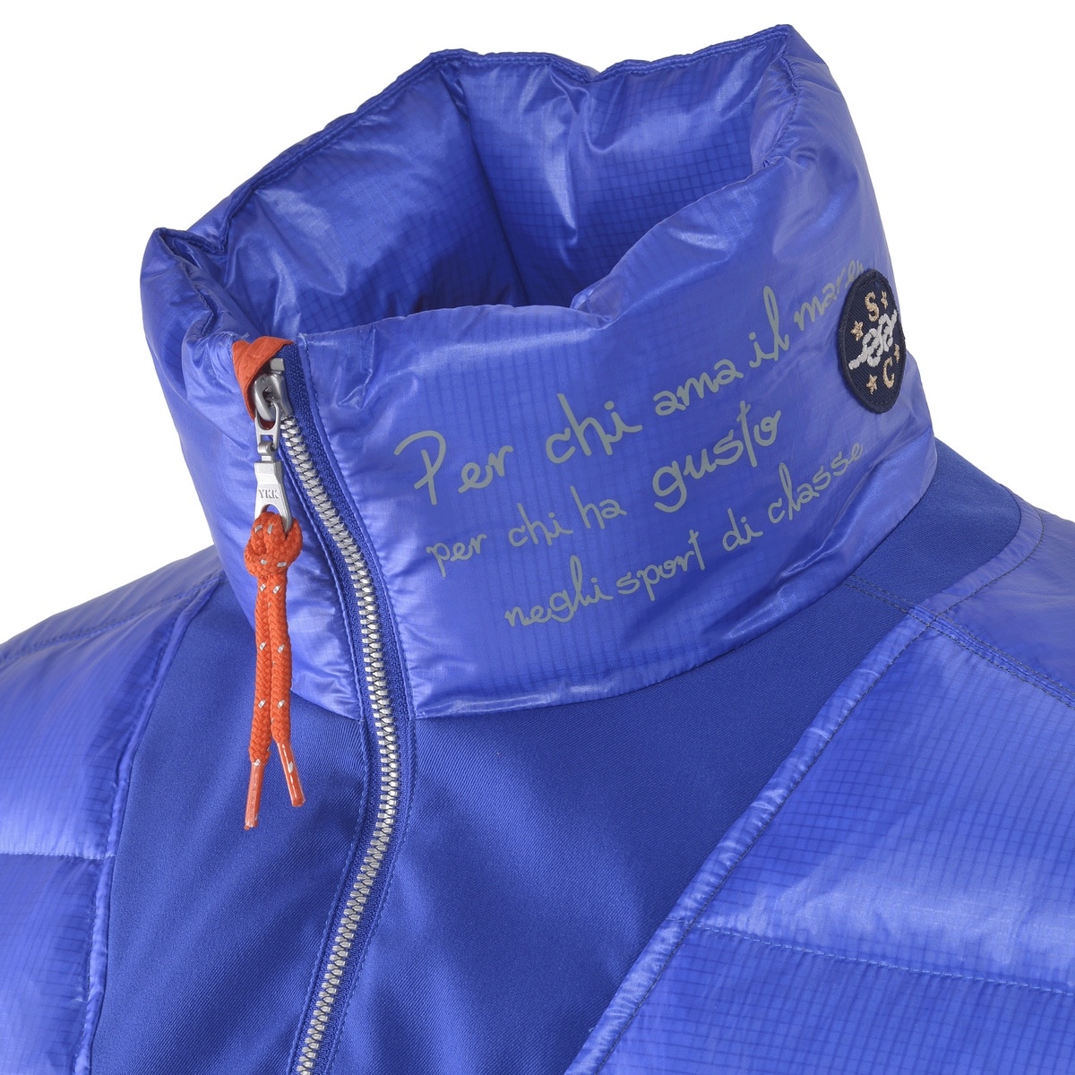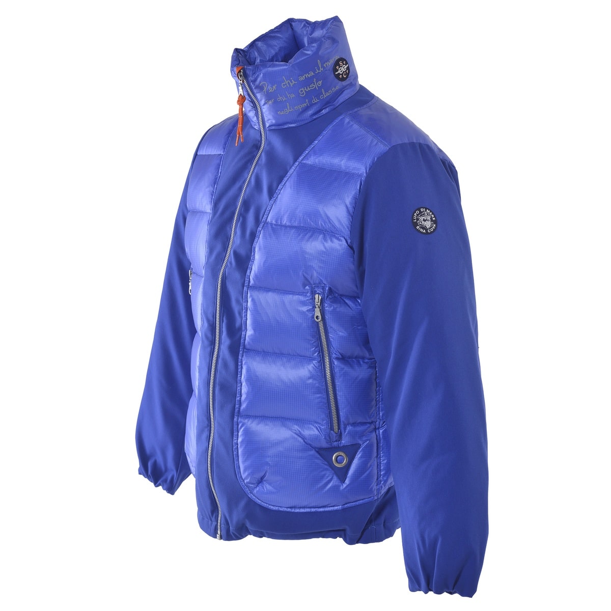 ネックとバックにロゴプリントをデザインした切替ダウンジャケットです。異素材を使用しベストを重ねているような切替デザインにし表情豊かなダウンジャケットに仕上げました。ZIPの引手には再帰反射素材、オリジナルハトメやウエスト部分にドローコードが付いており絞ることで外気の侵入防いだりと船の上でも使用できる機能性とデザインにこだわった一着です。・高機能で高い防寒性・ダウンジャケット・ポケット 外側:2個 内側1個(左胸)・真冬の防寒アウター・撥水加工【SINA COVA 2024 Spring & Summer Style Book】掲載商品モデル着用カラー:ブルー男性 身長:180cm / 着用:L size