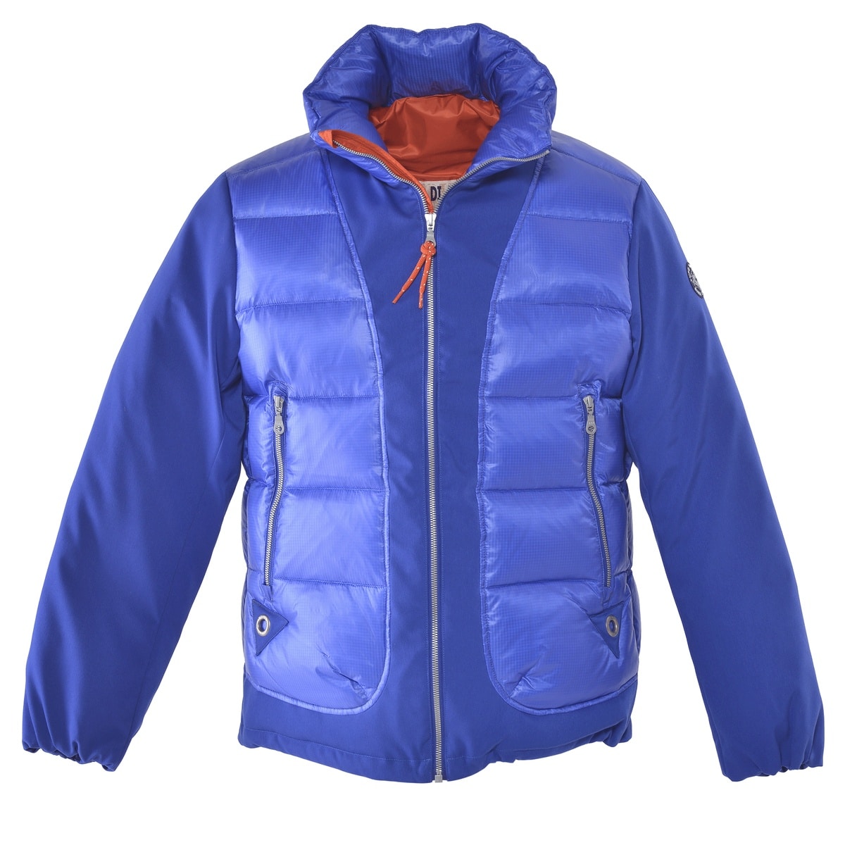 異素材を使用しベストを重ねているような切替デザインにし表情豊かなダウンジャケットに仕上げました。