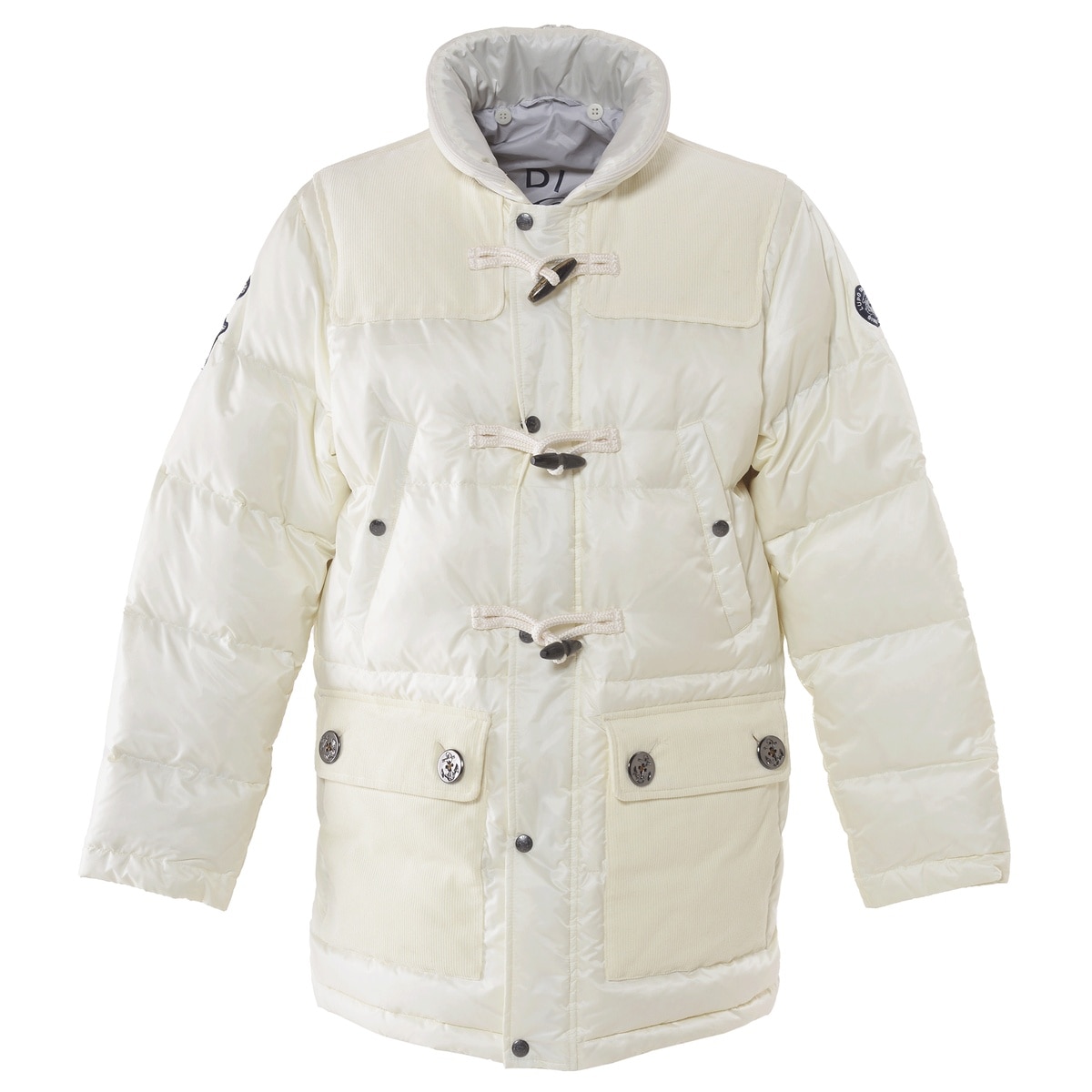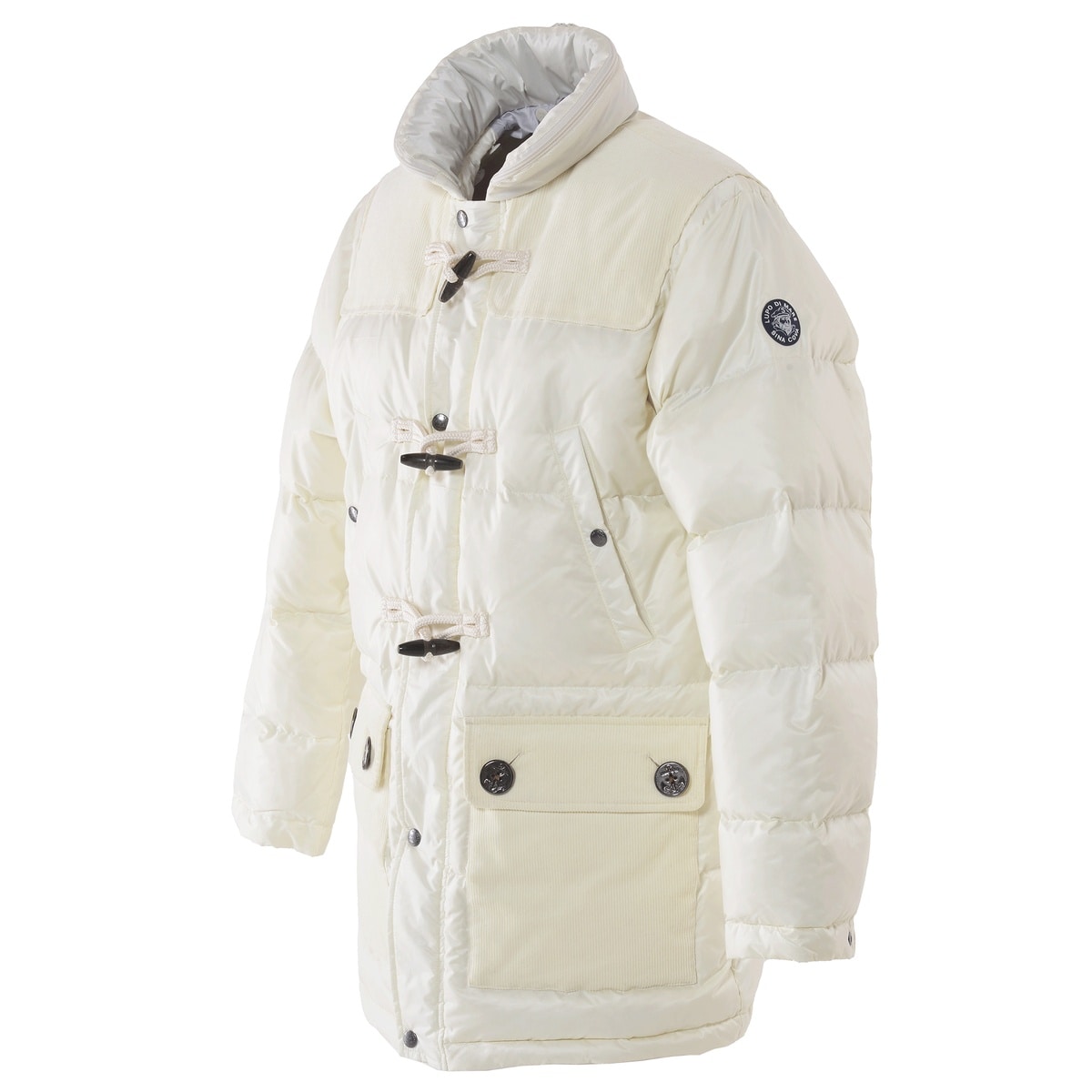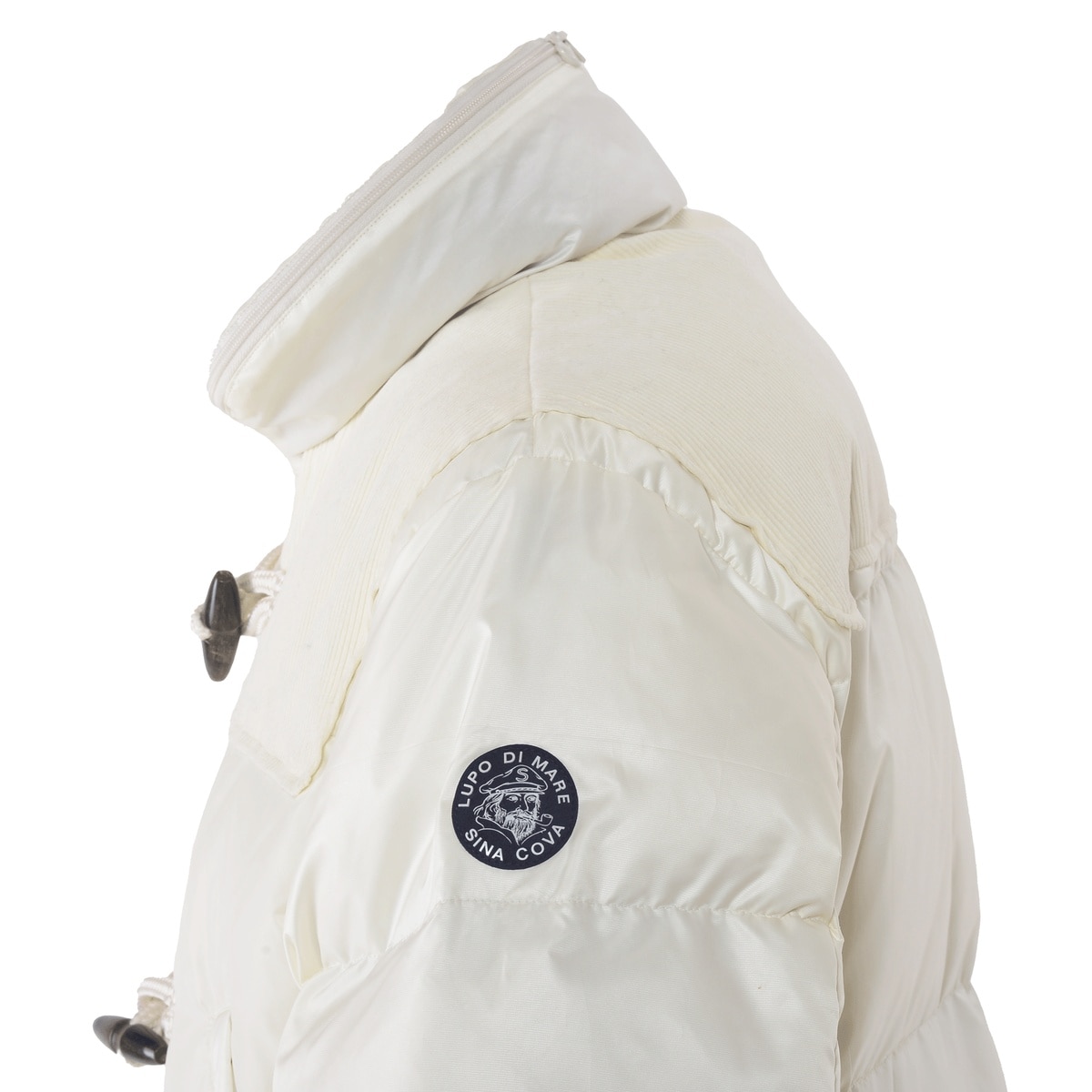 右袖に2種類のワッペン、背裏にはシンボルマークのロゴをプリントしたクルージングハーフダウンコートです。