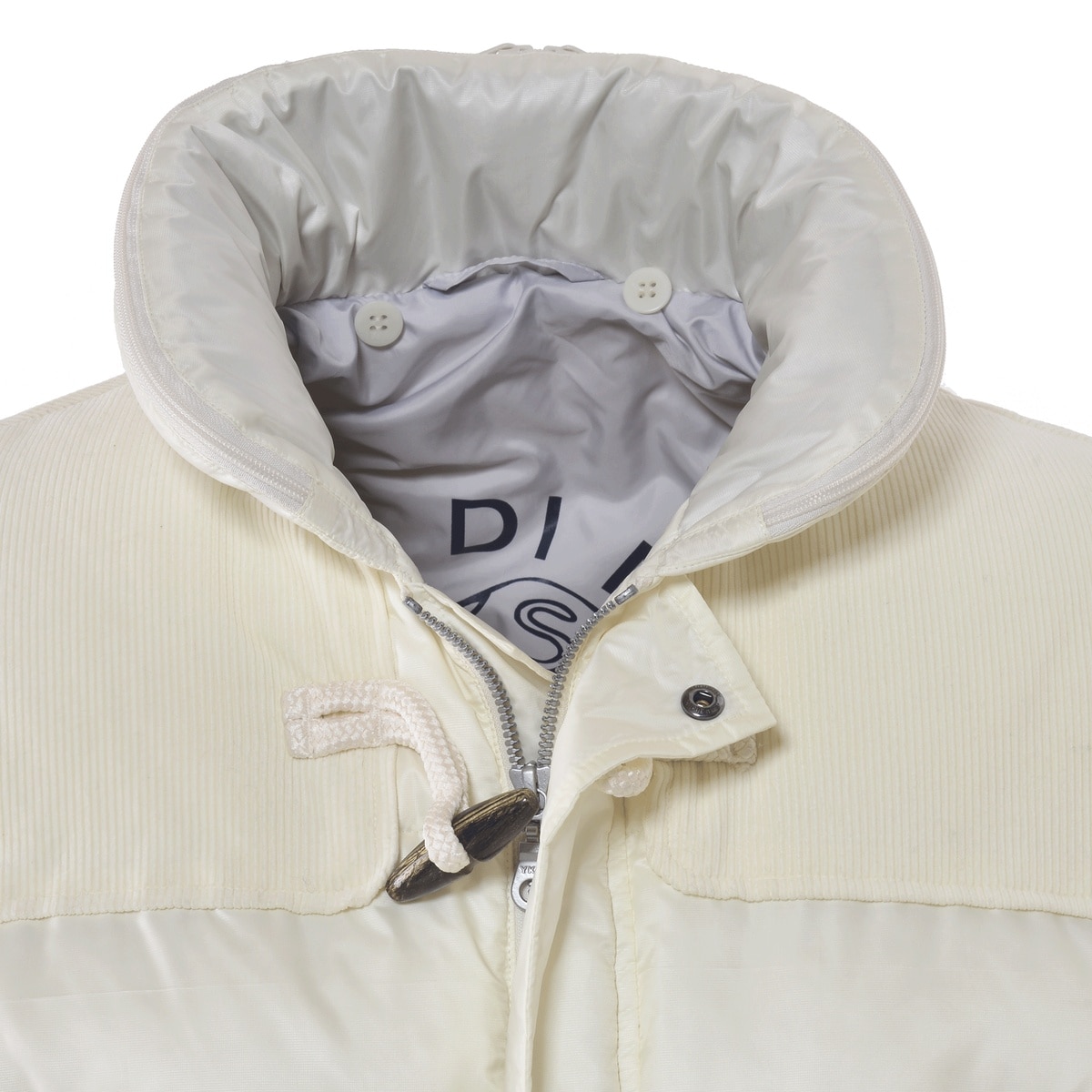 コーデュロイ生地やトグルボタンを使用した表情豊かな一着です。